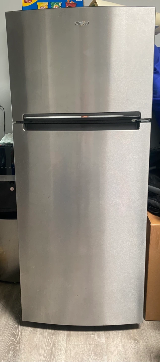10Selling a Whirlpool top freezer refrigerator in silver. It's in good condition and ready to keep your food fresh!