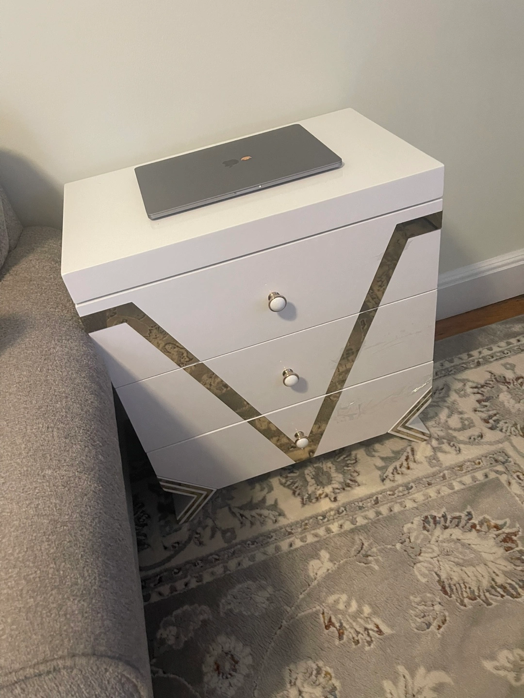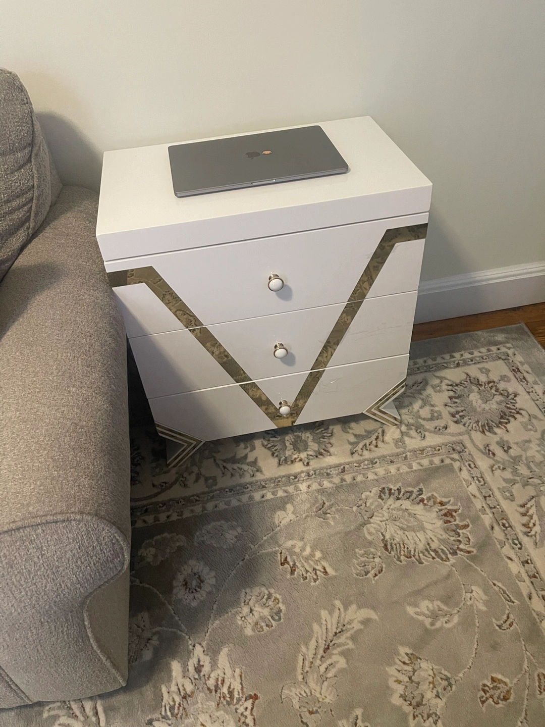 60Selling a stylish white nightstand with three drawers! It’s perfect for adding a touch of elegance to your bedroom. The nightstand features a unique design with decorative accents. It’s in great condition and ready for a new home