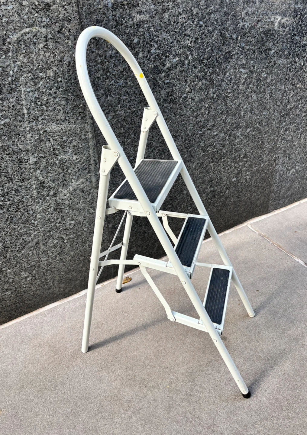65Cash $8 Selling a white 3-step ladder. Approximate dimensions: H 44.5” x 14”