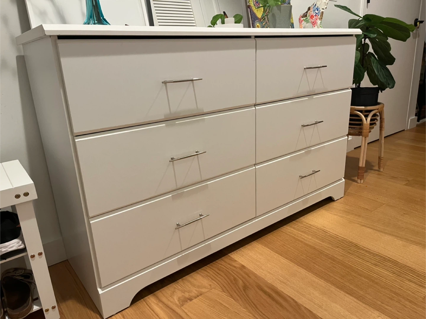 15Here's a white dresser with six drawers! It's in great shape and ready to organize your clothes or anything else you need to store away. The drawers slide smoothly, and the minimalist design will fit right into any room. A practical and stylish storage solution! It saber my life in my mini studio :) If interested, ready to be picked up starting from December 9