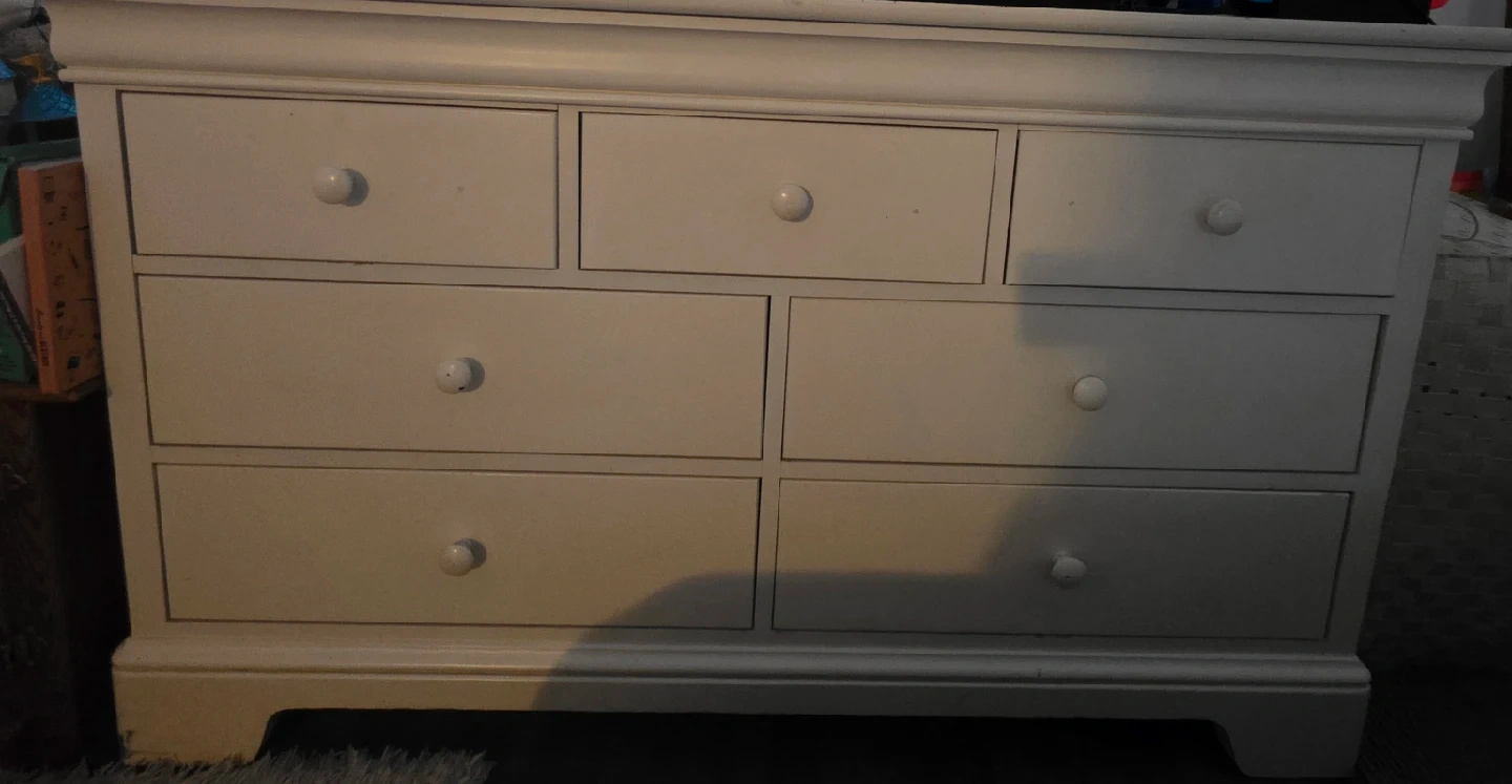 10Selling a white dresser with seven drawers! It's perfect for adding some extra storage to your bedroom or any other space where you need to organize your items. The dresser is in good condition and ready for a new home