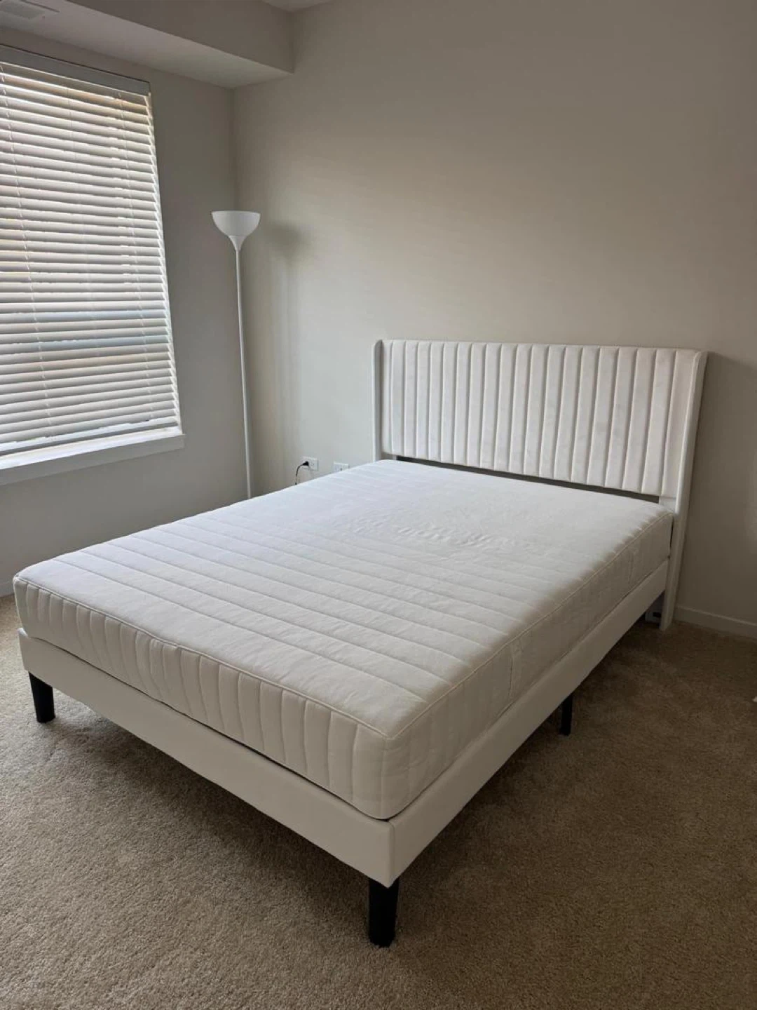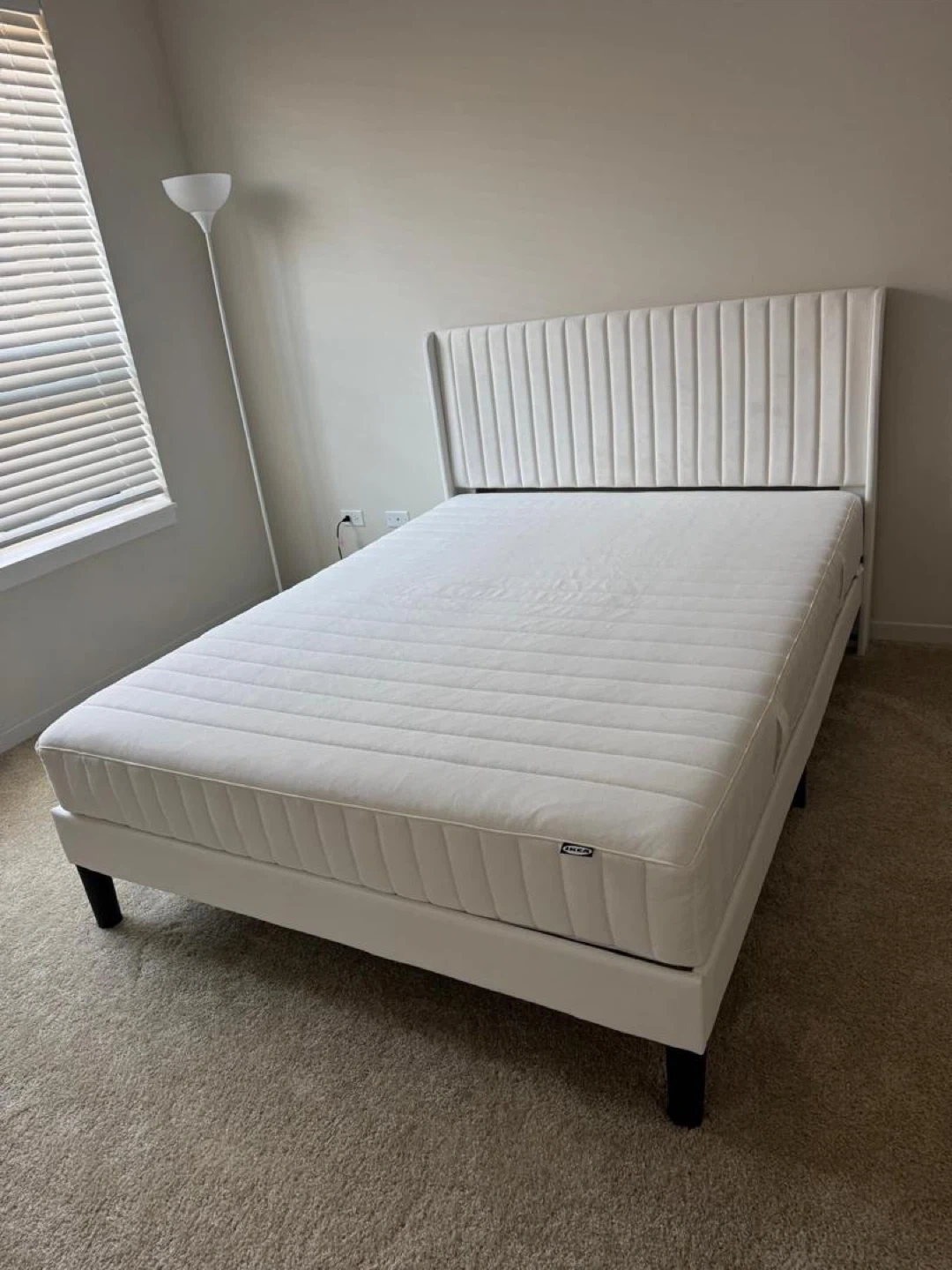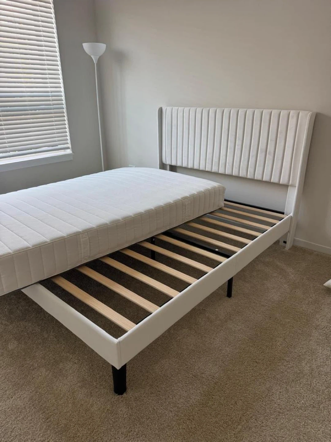 I'm selling a used white bed frame and mattress It's in great condition. Bad frame $100 mattress $250