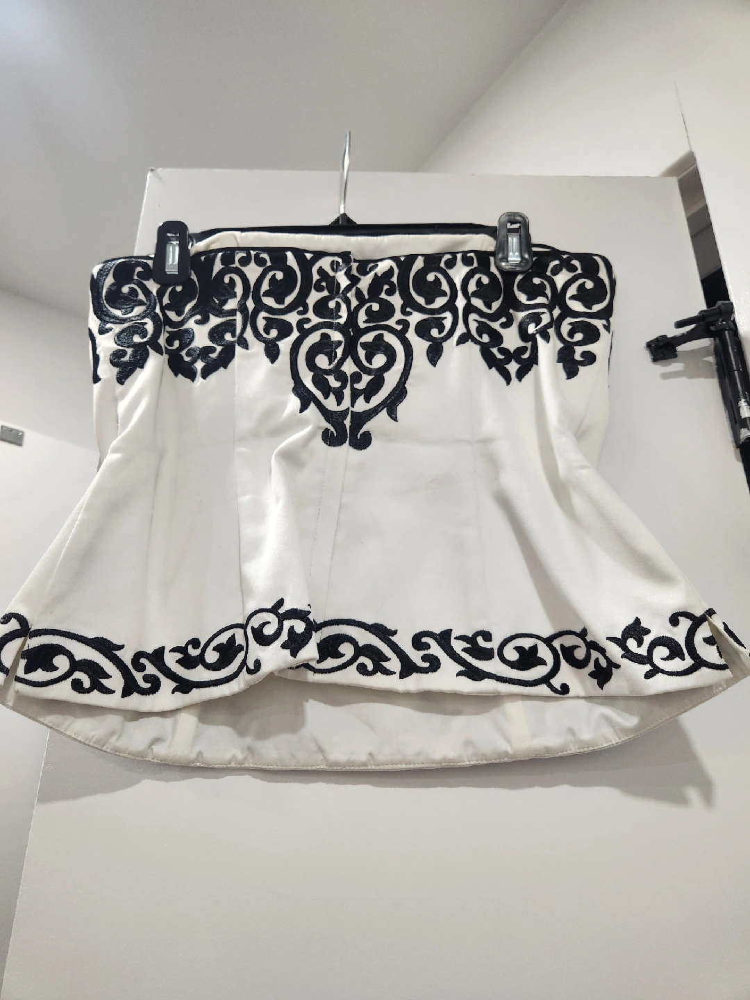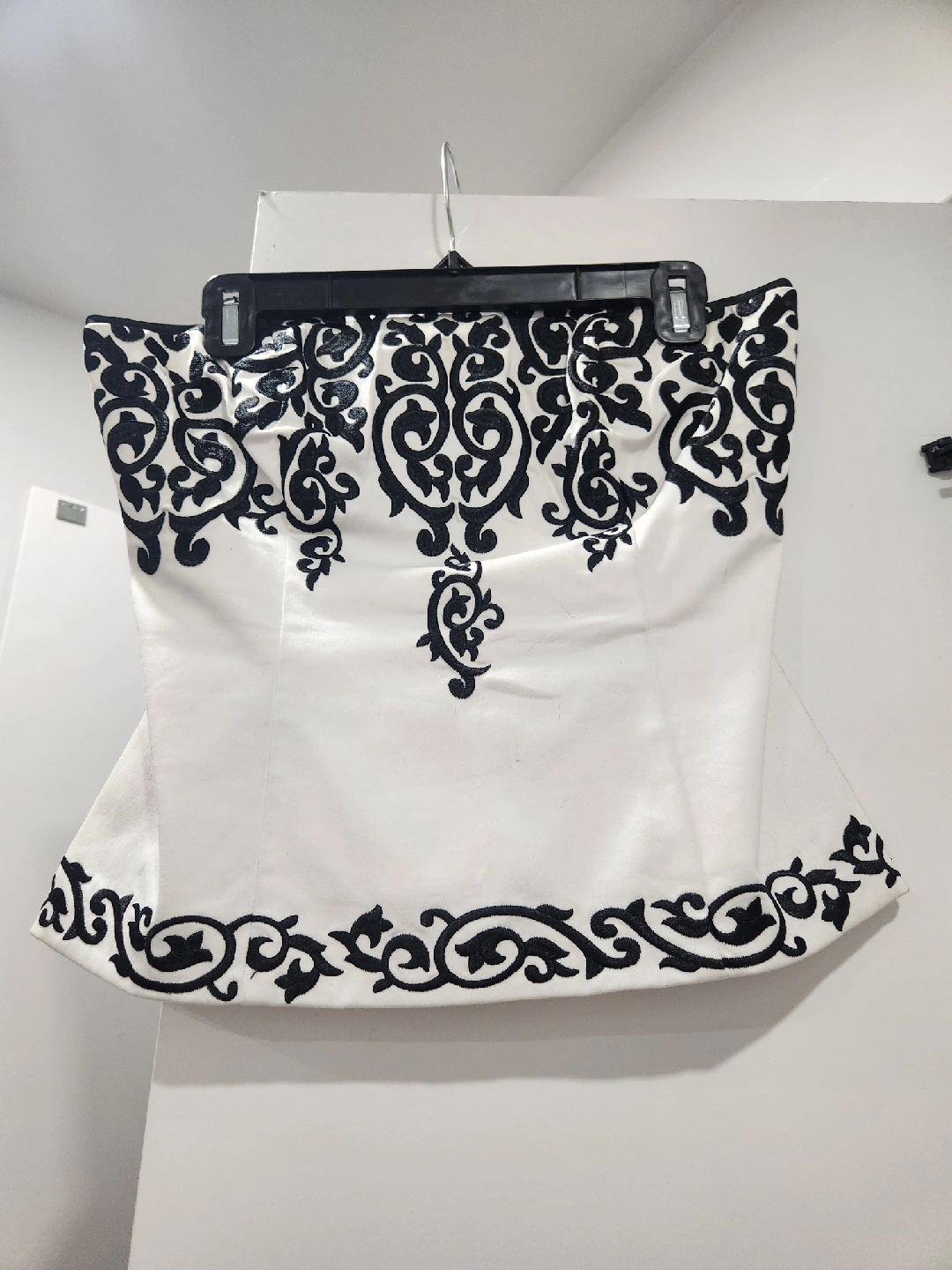 62White House Black Market: white & black embroidered shirt. Dress it up or down. Zips in the back. LIKE NEW!