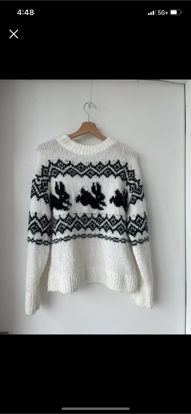 Cute white sweater with a black rabbit pattern! It's in great condition and ready for a new home