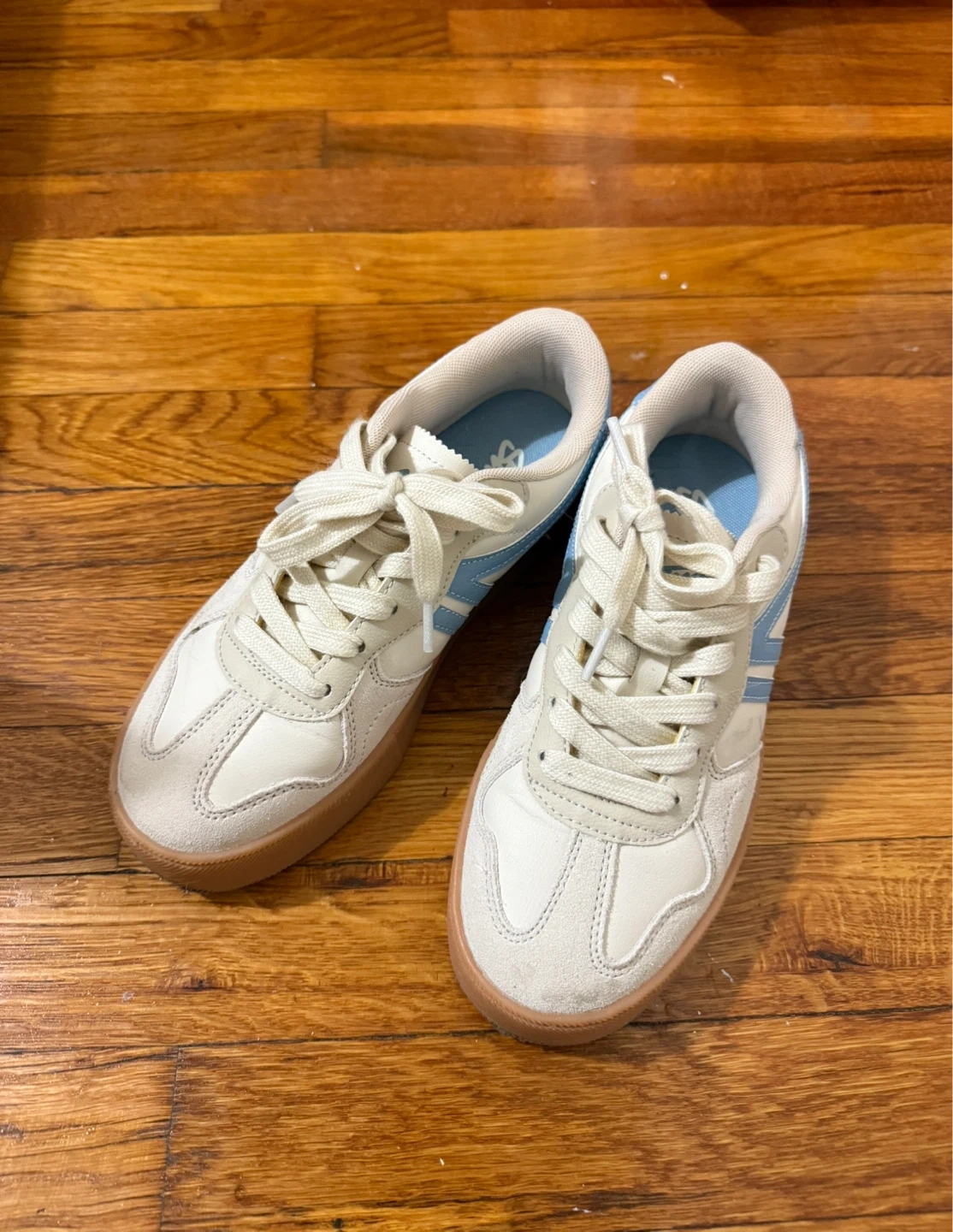 235Cute sneakers in white with baby blue accents! They are size 36, which is about a US size 6. Perfect for adding a pop of color to your casual outfits Still in a good condition Pick up : Elmhurst, US Supermarket OR *Manhattan : 9 Avenue nearly subway (E train 50 st station ๐ ) Cash ๐ต