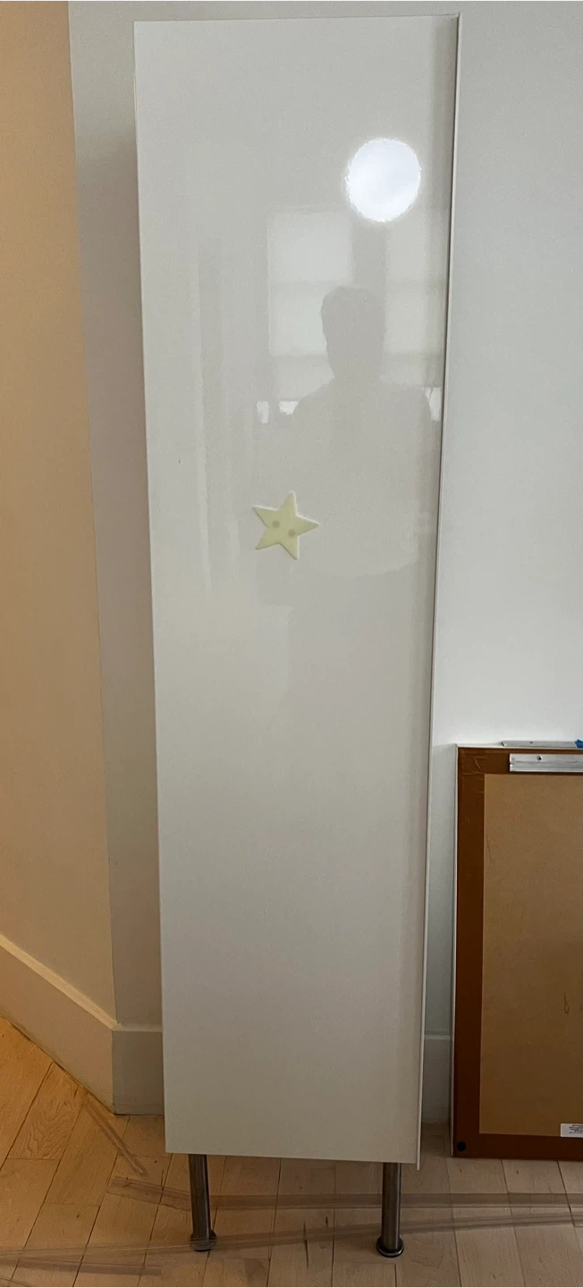 This is a white cabinet with glass shelves metal legs. Excellent condition. Free