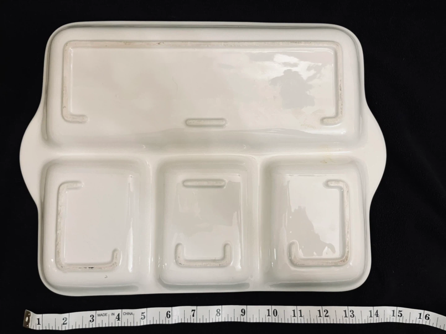 The tray features a basket weave design and is perfect for serving appetizers or snacks. Excellent condition. Great gift!