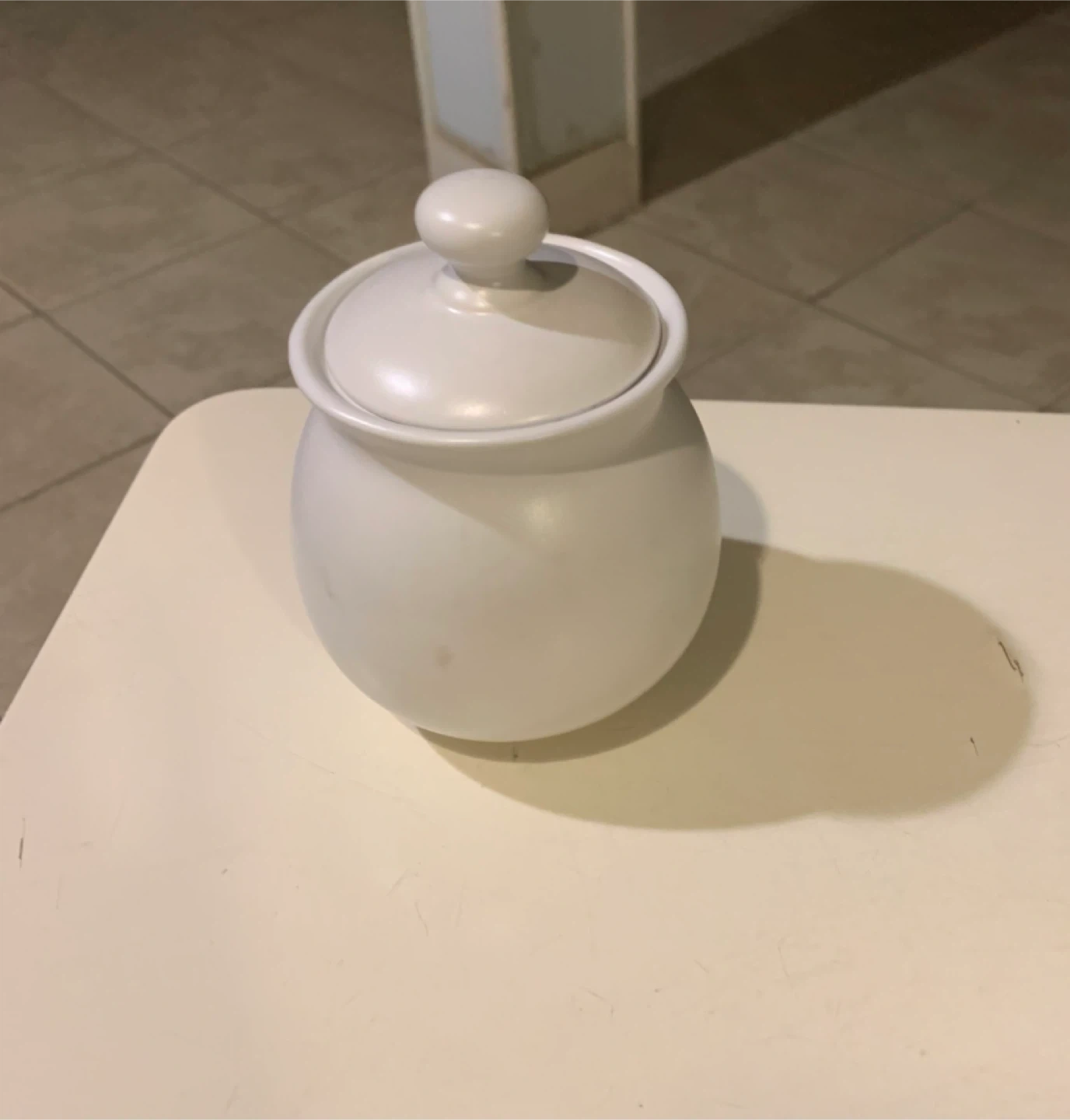 36Free a white ceramic jar with a lid. It's in great condition and would be perfect for storing small items or adding a minimalist touch to your decor