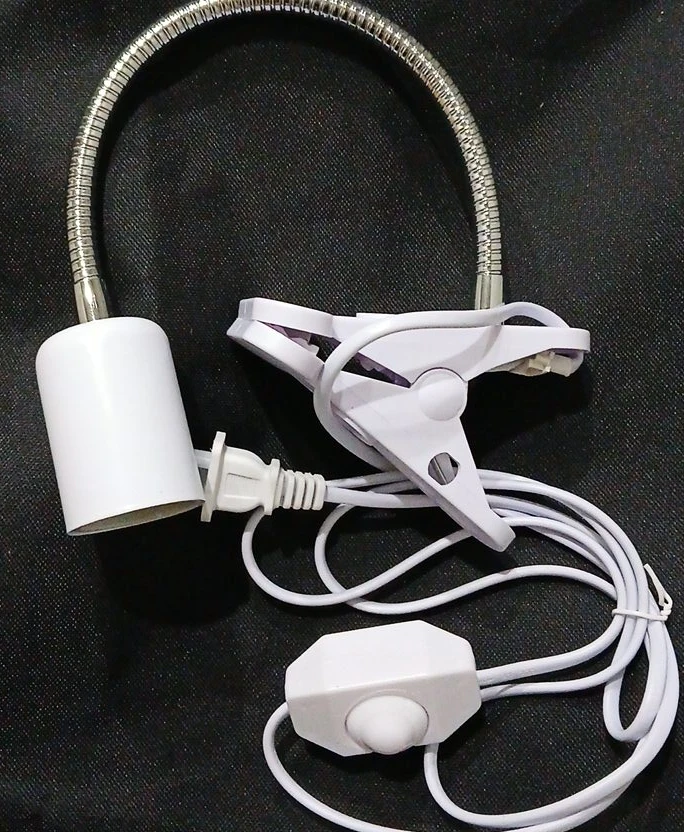 15Here's a handy clip-on desk lamp! It's white and has a flexible gooseneck, so you can adjust the light exactly where you need it. Great for reading or any task that needs a little extra light