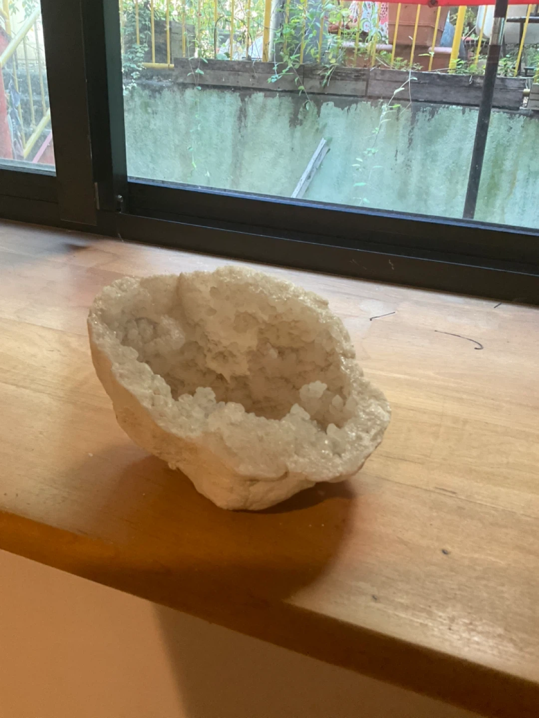 Selling a beautiful white crystal geode! It's a unique piece that would look great as a decorative item in your home. It's in good condition and ready for a new home