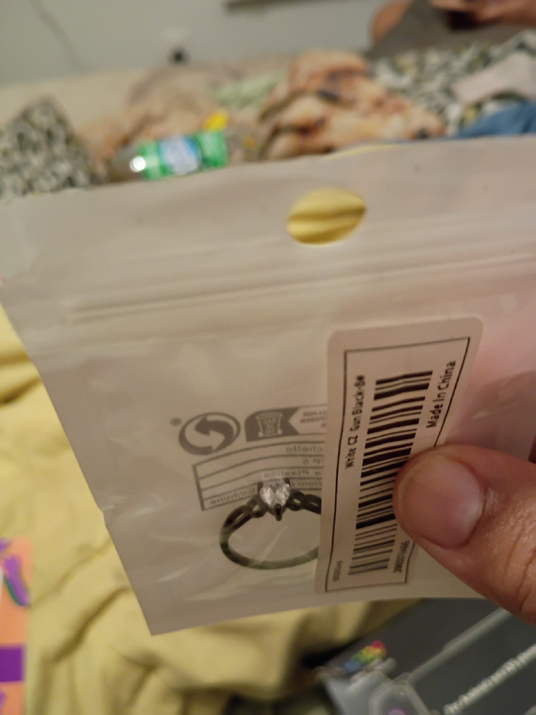 65Selling a ring with a white CZ stone and a gun black band. It's still in the original packaging