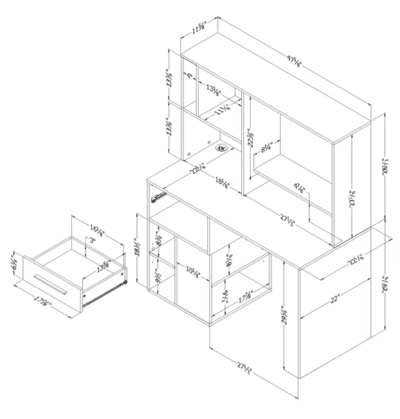 - Dimensions22.375" H X 47.75" W X 8.25"' D