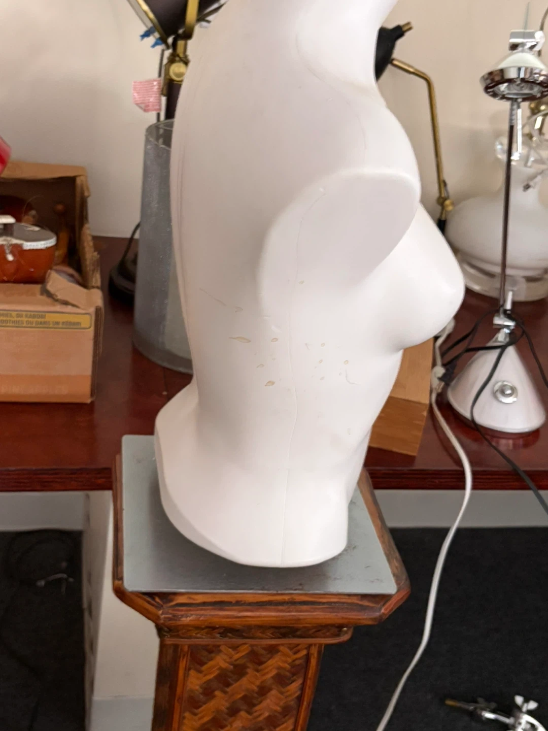 Selling a white female mannequin torso. It's in great condition and perfect for displaying clothing or jewelry. It's a simple and effective display piece!