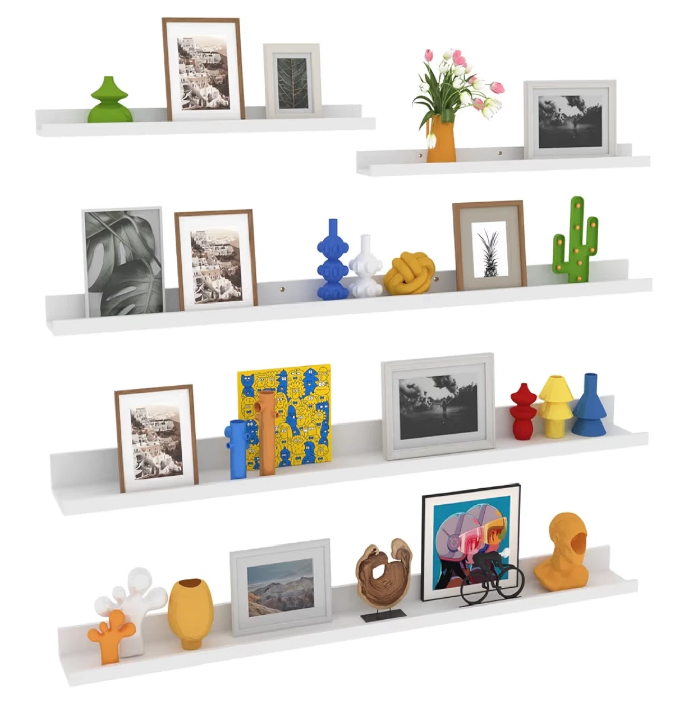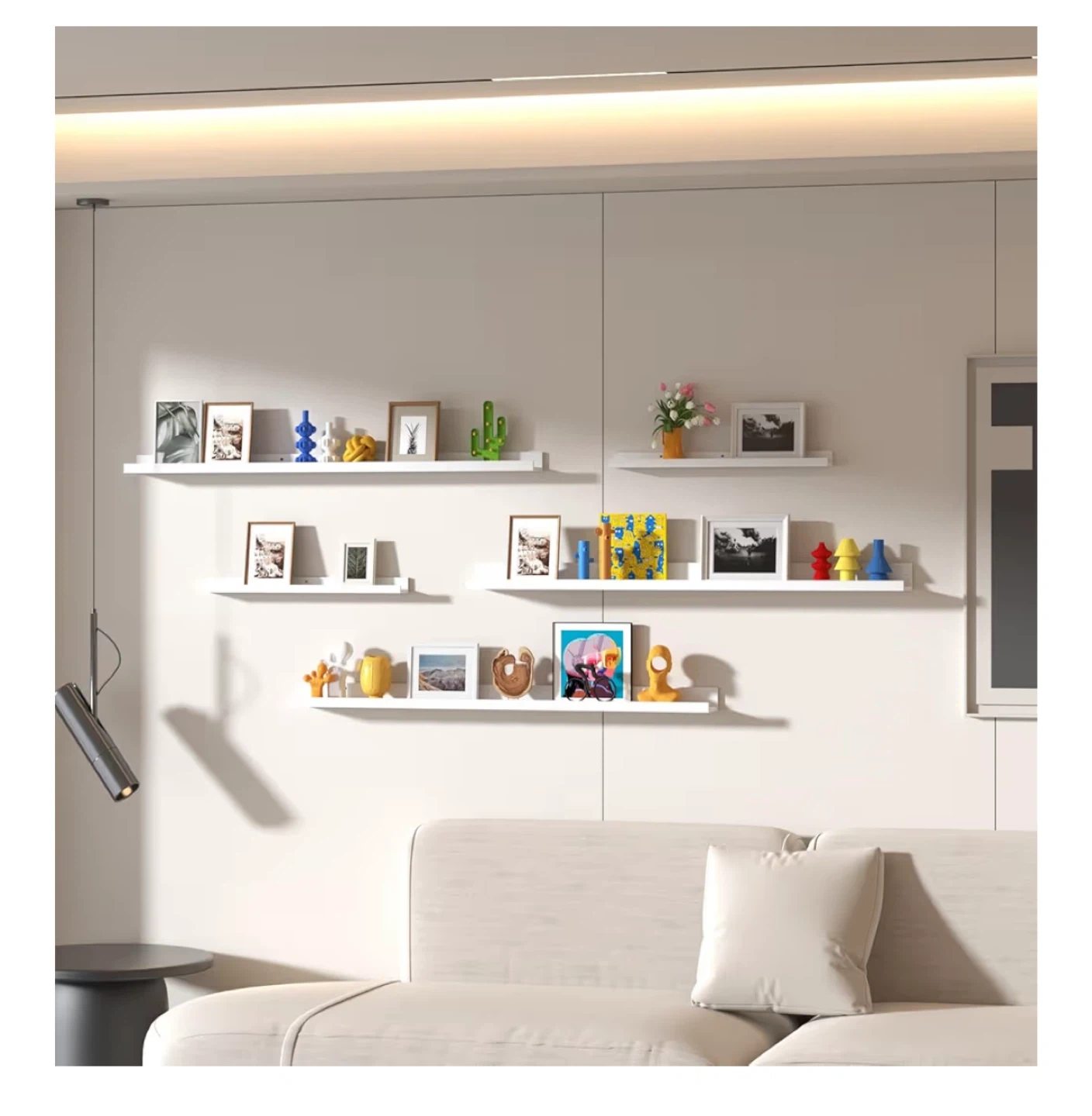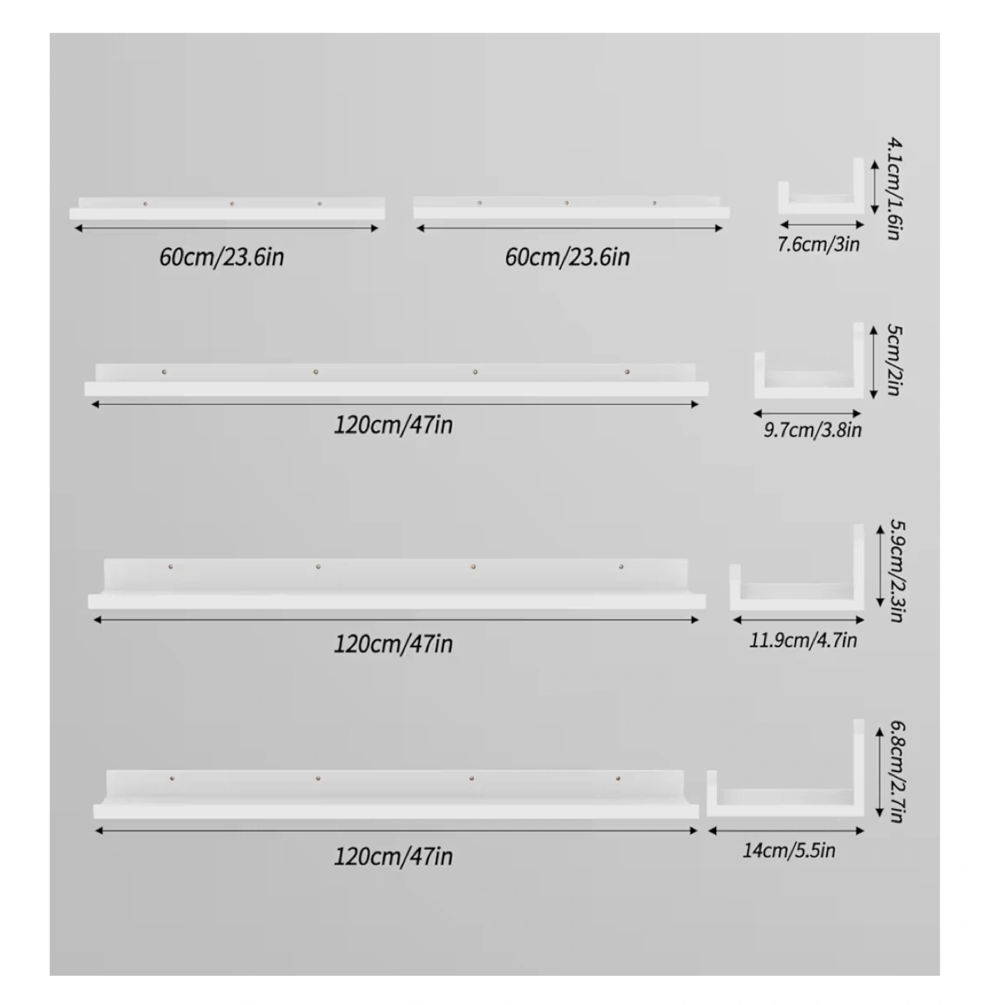 10Selling a set of 5 white floating wall shelves! BRAND NEW The set includes: - Two shelves measuring 60cm/23.6in each - Three shelves measuring 120cm/47in each Perfect for displaying photos, artwork, or small plants! Pick up in Columbus Circle or delivery
