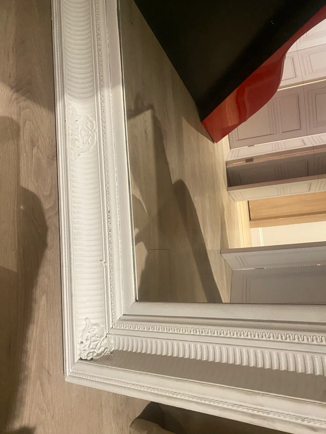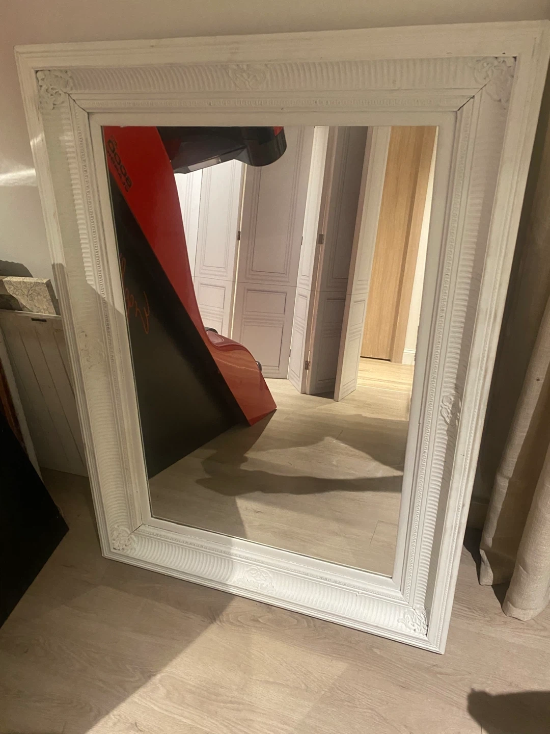 36Selling a nice white framed mirror. Its dimensions are 46 by 33 inches. It would look great in any room!