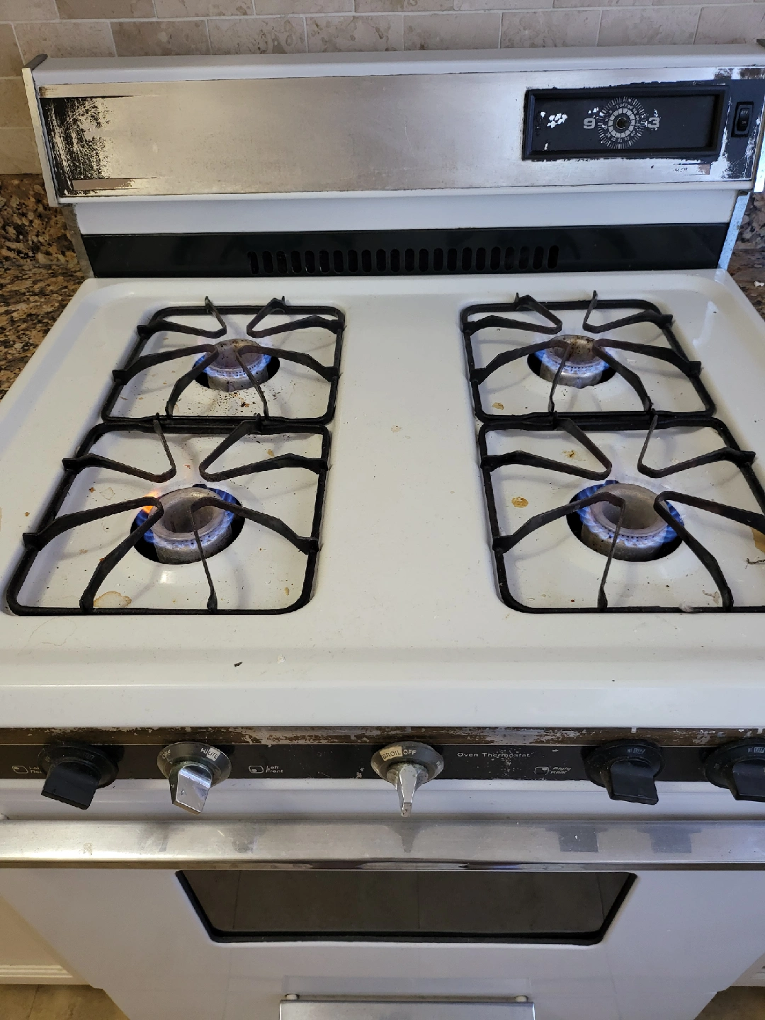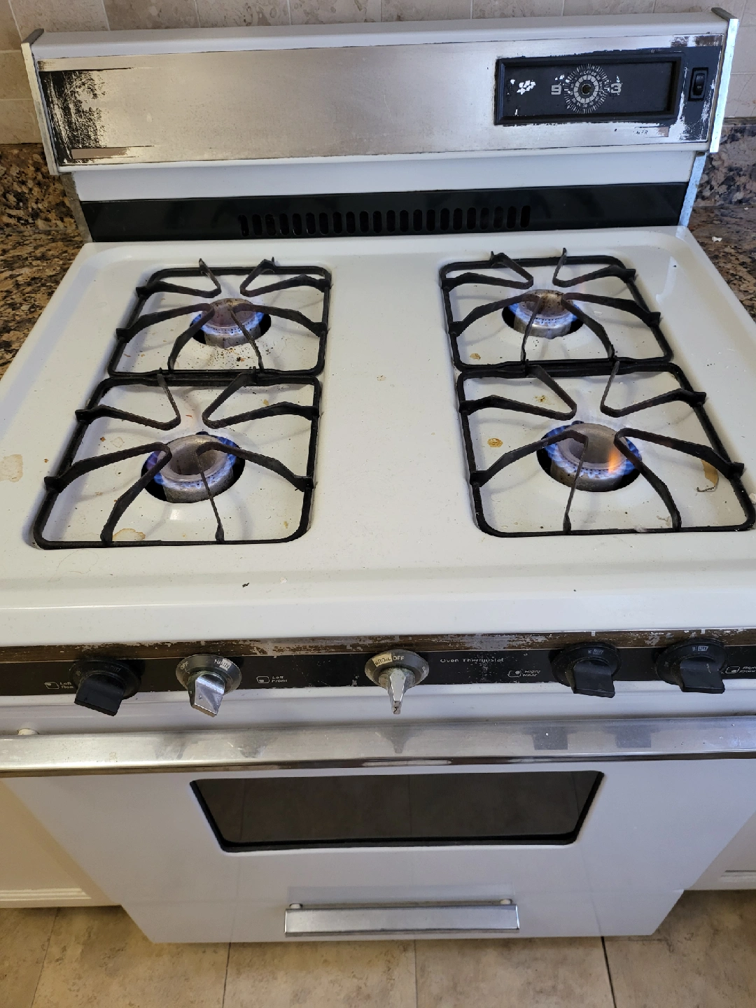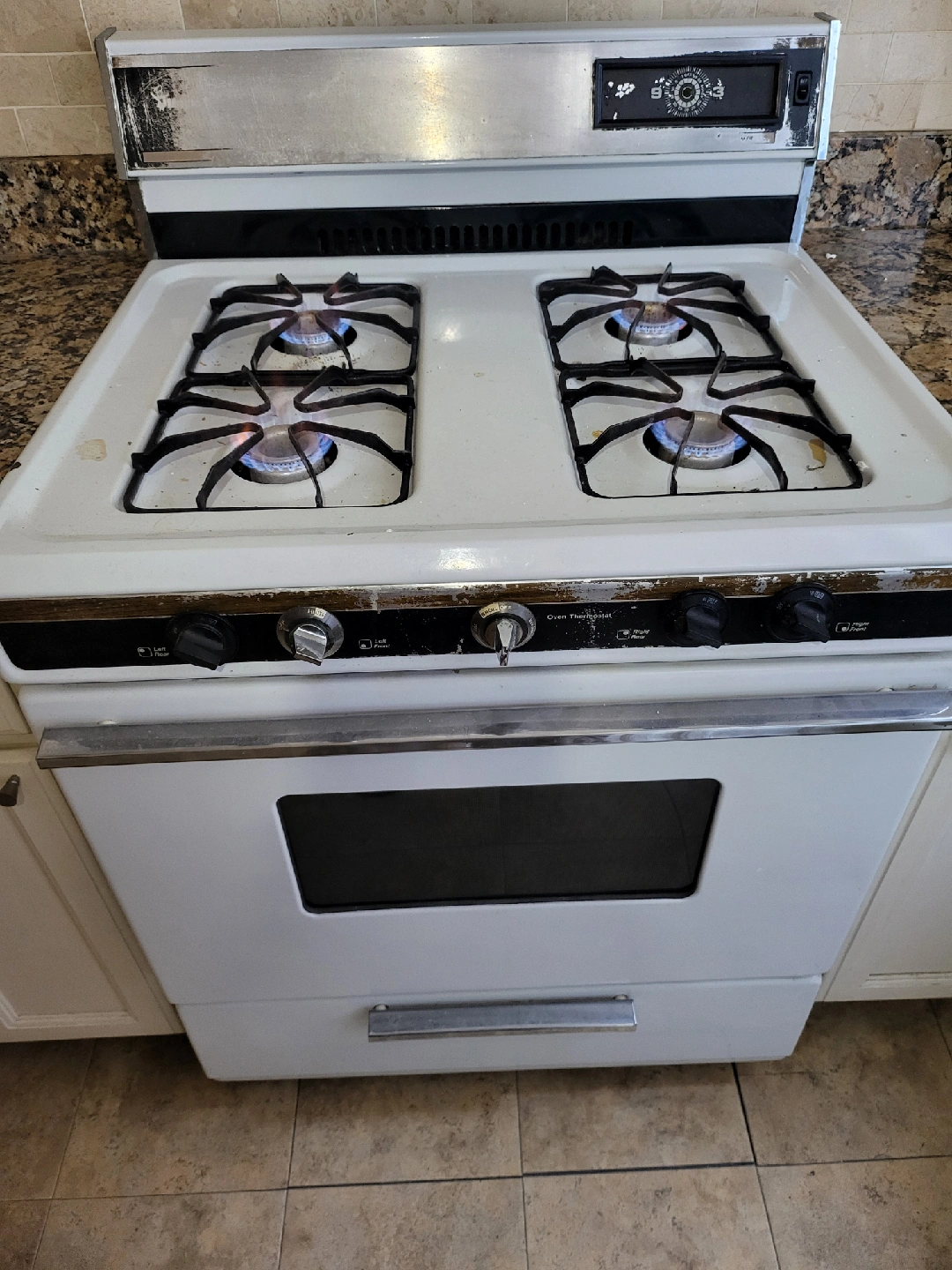 Selling a white gas range oven. It shows signs of wear and use, but it's still functional. Great for someone looking for a basic oven! $40 its $30