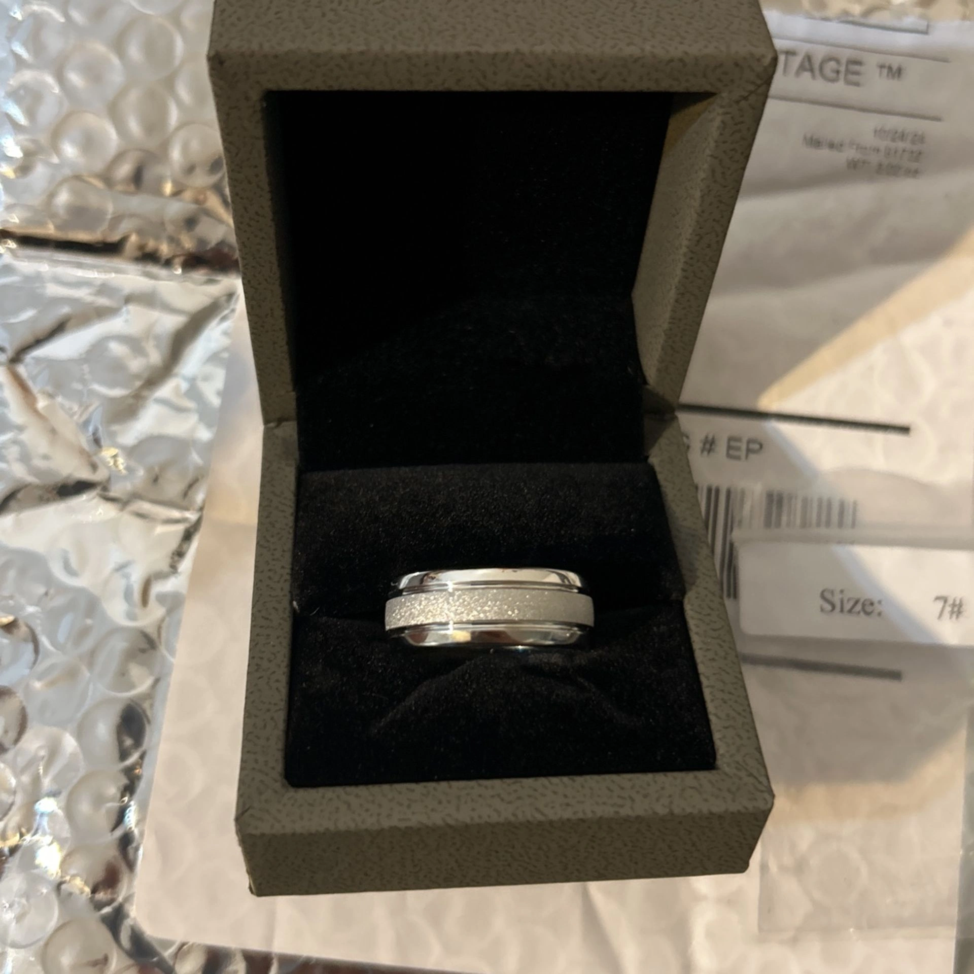 Size 7. I purchased this for my husband, but it ended up being too small and because I customized it they didn’t wanna exchange it or give me a refund so now I have to sell it. I love you husband inside and it’s a size 7, but it’s new obviously because it never Was used unfortunately