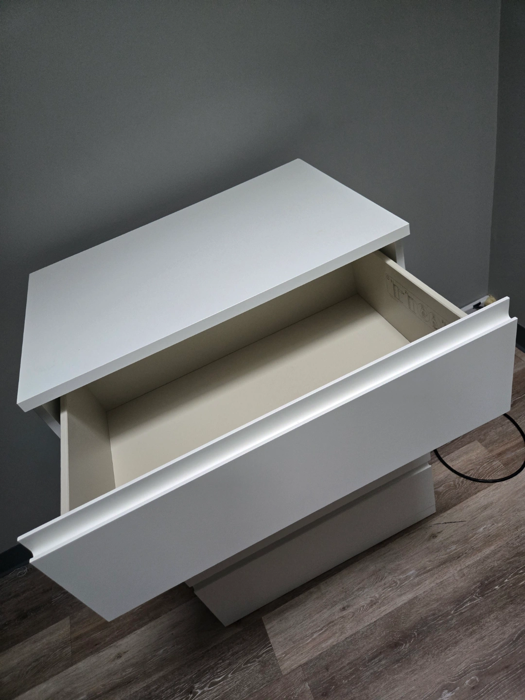 36White chest of drawers. Four drawers. Minimalist design. Good condition. Some minor wear.