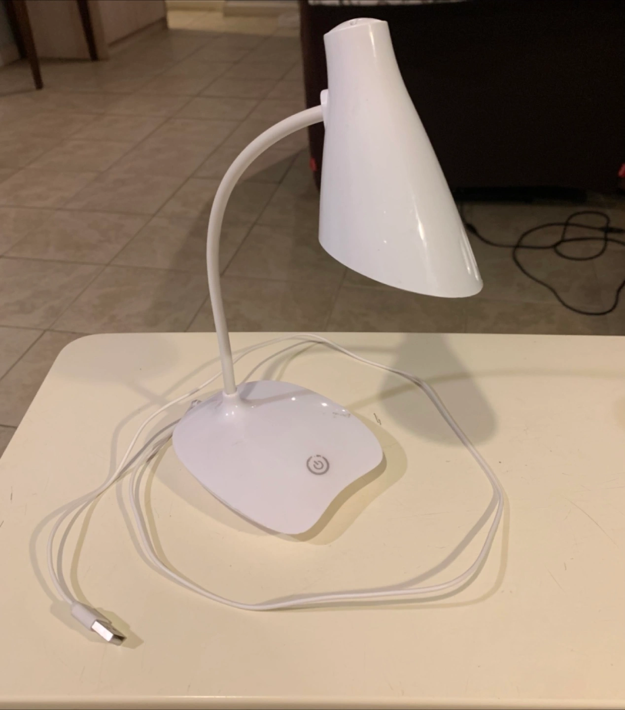Here is a white LED desk lamp. It has a flexible gooseneck design, allowing you to adjust the light to any angle you need. It's perfect for a desk, bedside table, or anywhere you need a little extra light