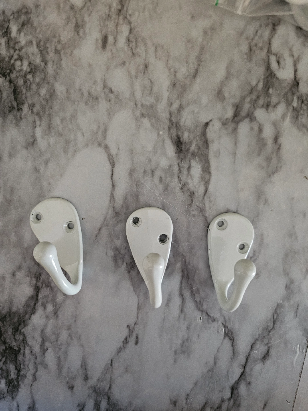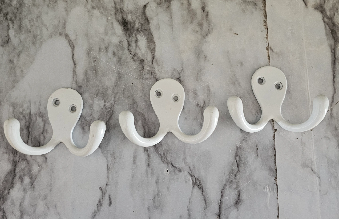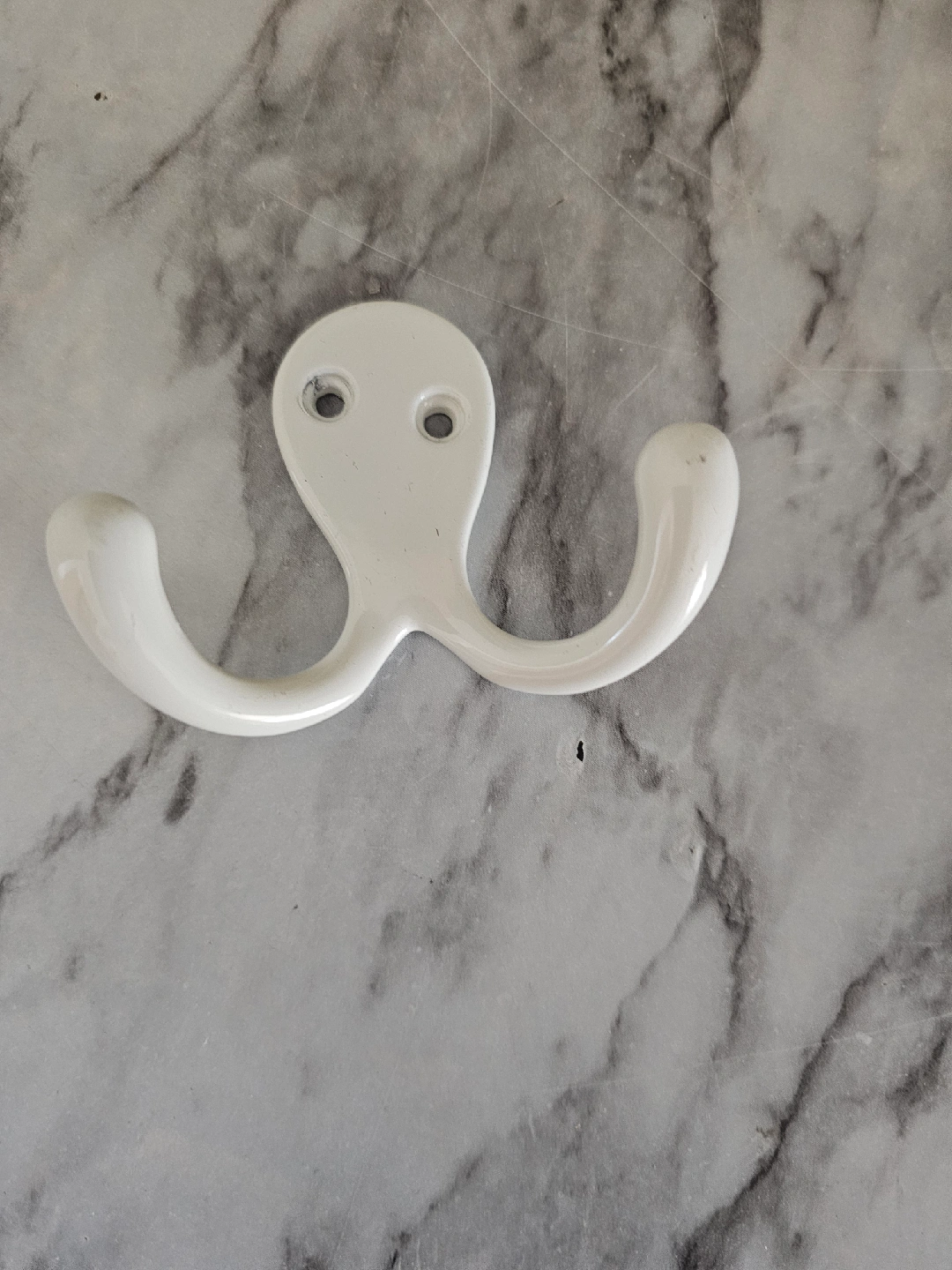 I have a bunch of white metal wall-mounted hooks for sale! They come in single and double hook styles.! These are perfect for adding extra hanging space in your closet, bathroom, or entryway. They're in great condition and ready to use. selling 3 for $5.