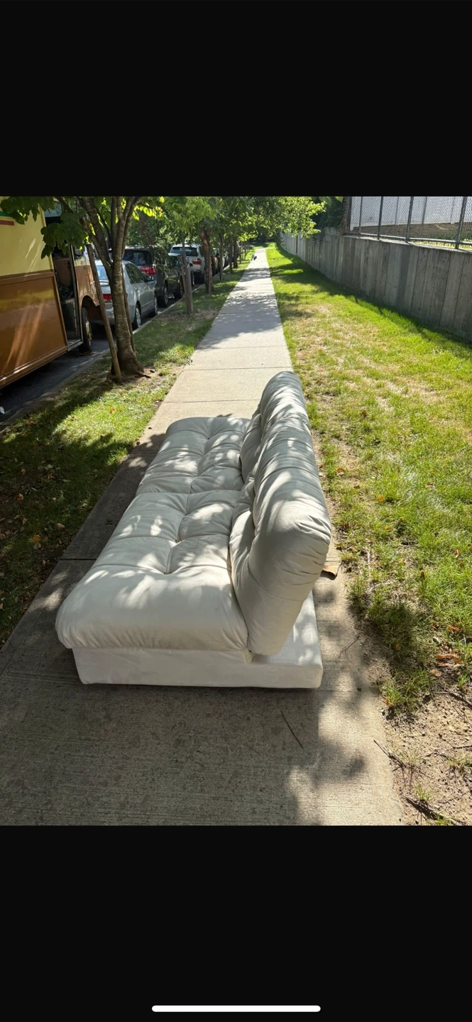 Selling a white modular sectional sofa. It's in good condition and ready for a new home! It can be arranged in different configurations to fit your space