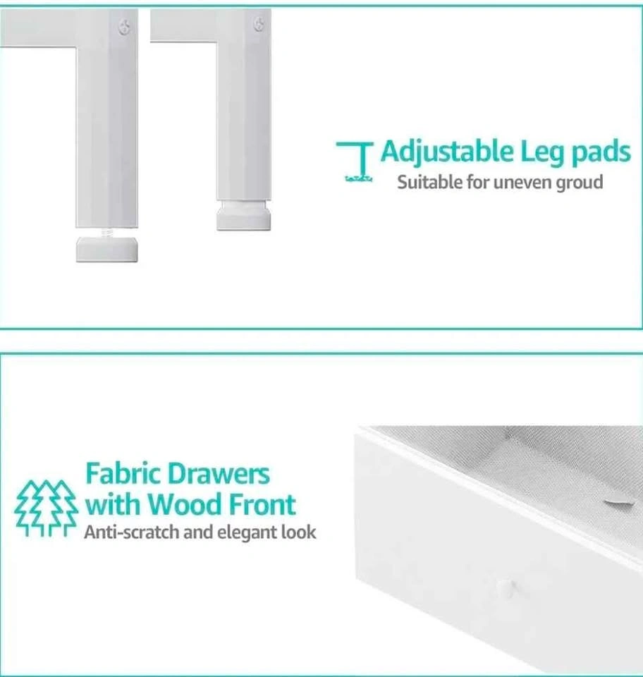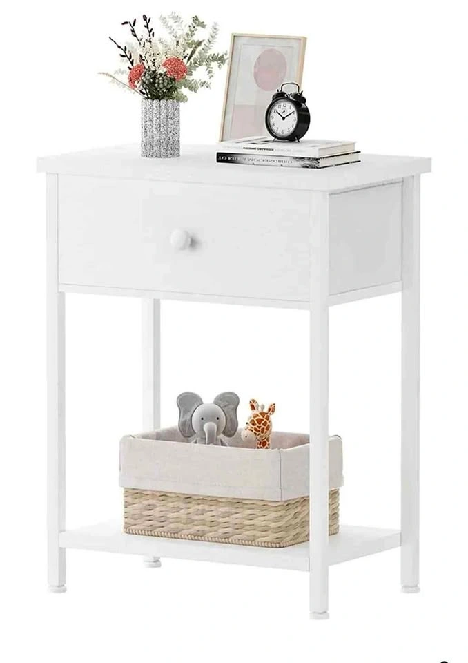 Brand new, never used! White nightstand with drawer. Color: White Model Name: White Nightstand with Drawer Material: Engineered Wood, Fabric, Metal Product Dimensions: 13.8"D x 17.8"W x 22.8"H Item Weight: 4.54 Kilograms Large Capacity for small Space: Overall dimension: 13.8"D x 17.8"W x 22.8"H. Drawer dimension: 13"D x 15"W x 5.1"H. Each drawer supports up to 10 lbs, the top wood could support to 35lbs, open shelf support 20 lbs. Fabric Drawer With Wood Front: This white nightstand has fabric drawers with a wood front, elegant look and easy to clean, removable wooden handle. Storage open shelf, offer stable support and ensure years of use, convenient to clean. Drawers are super easy to slide in and out. 4 adjustable feet to protect the floor from scratches. Lightweight and easy to assemble if you are headache with wood furniture. The simple and modish design of the bedside furniture matches perfectly with any furnishing style. Could be a nice small piece of furniture to be placed in an easy-look place. This small nightstand white is ideal for bedroom, college dorm, living room, office and more. A convenient end table by sofa or a toy organizer in children's room.