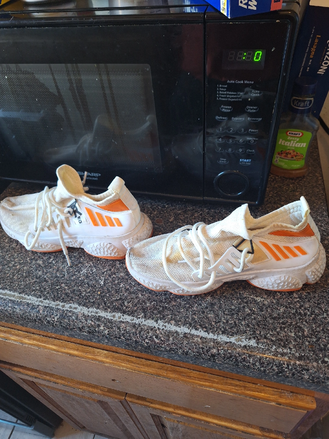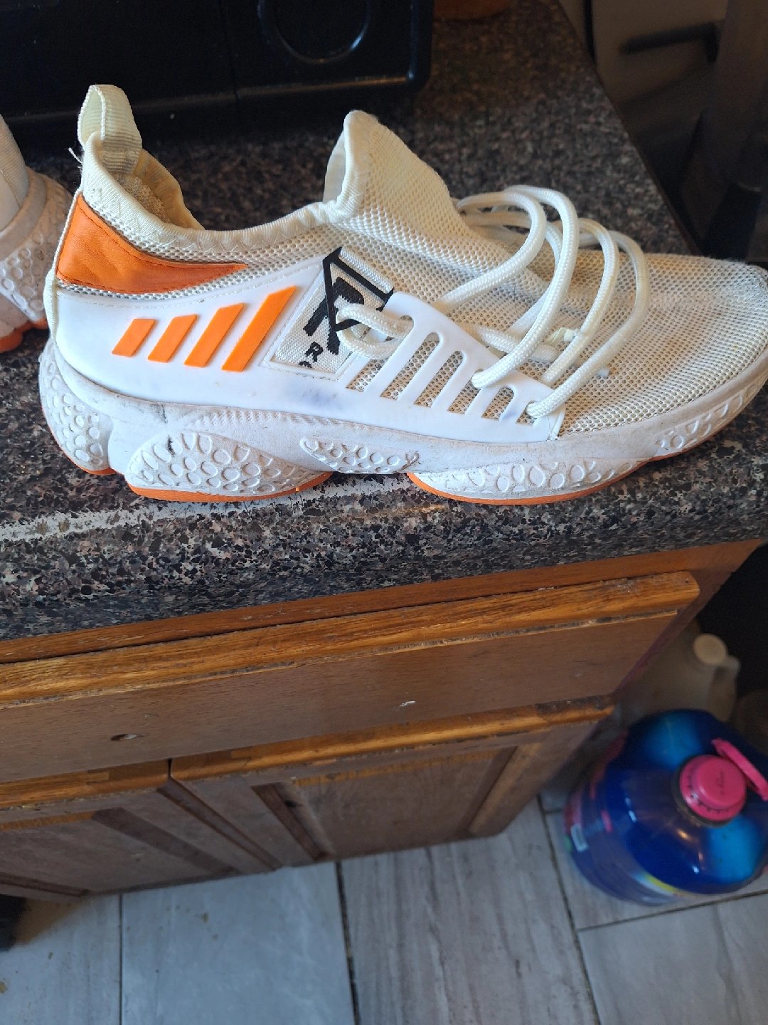 68These are pre-owned white and orange sneakers. They have been worn, but still have plenty of life left! They are comfortable and stylish for everyday wear