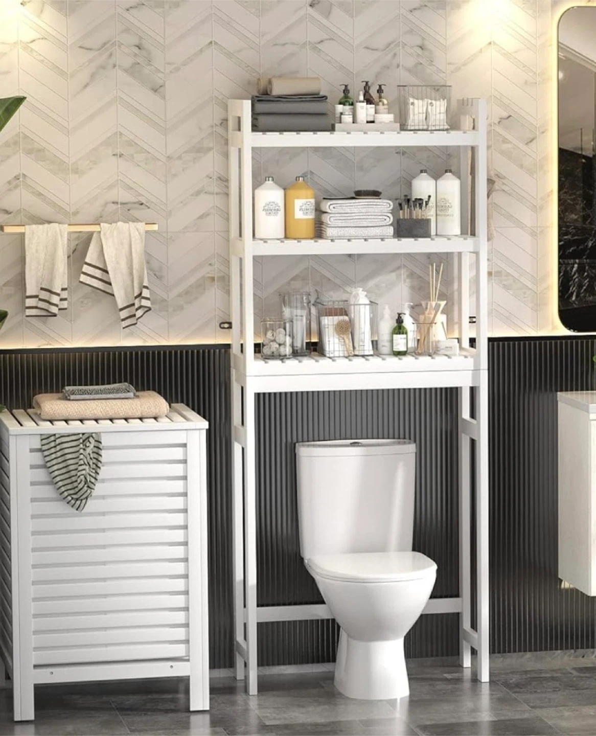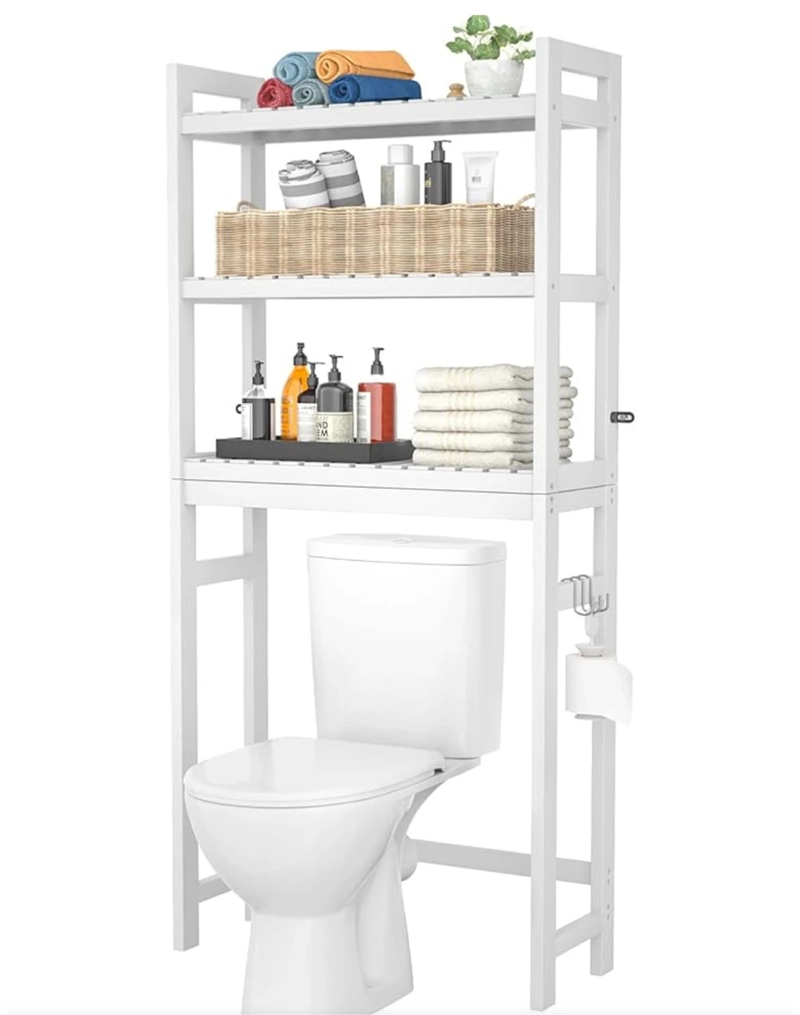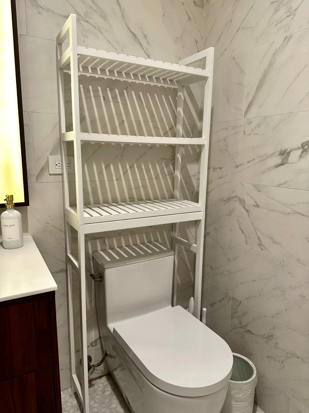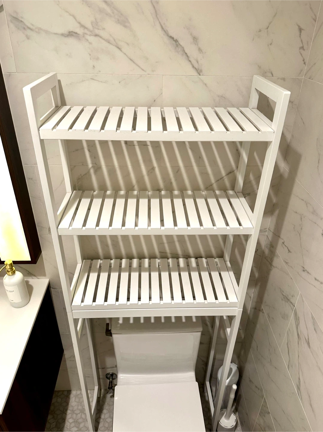 I'm selling a white over-the-toilet storage shelf! It's a great way to maximize space in your bathroom. The shelf is designed to fit over most standard toilets. In a great condition