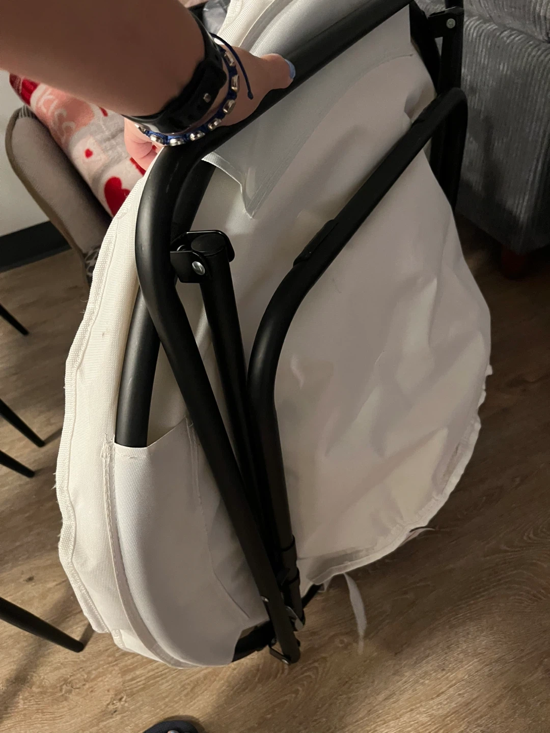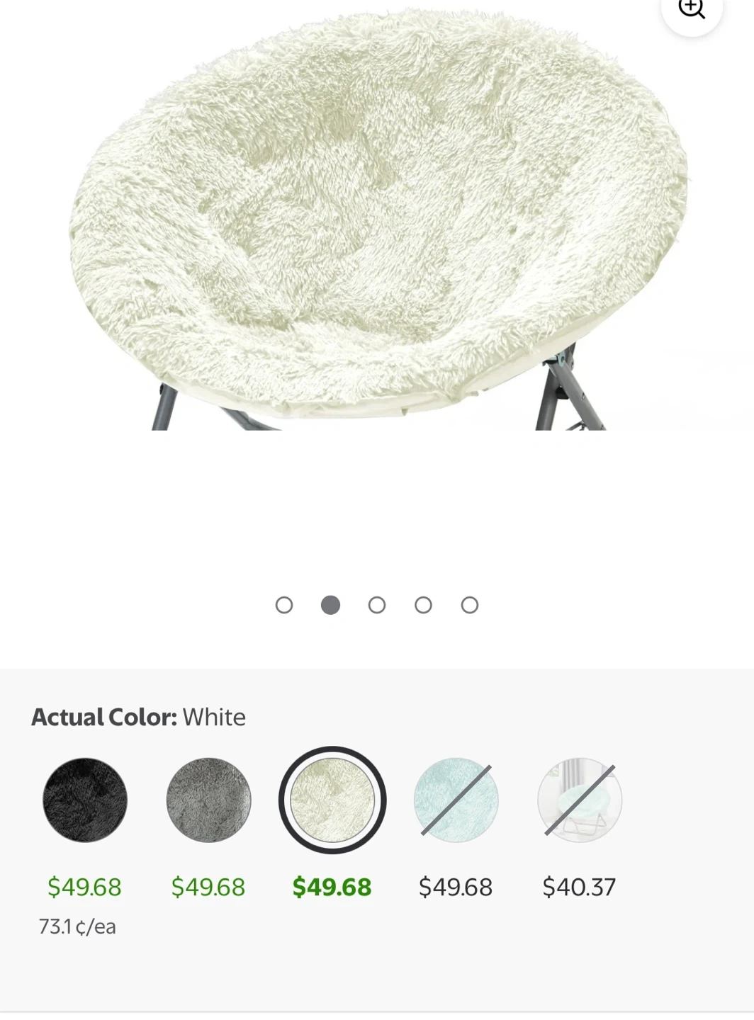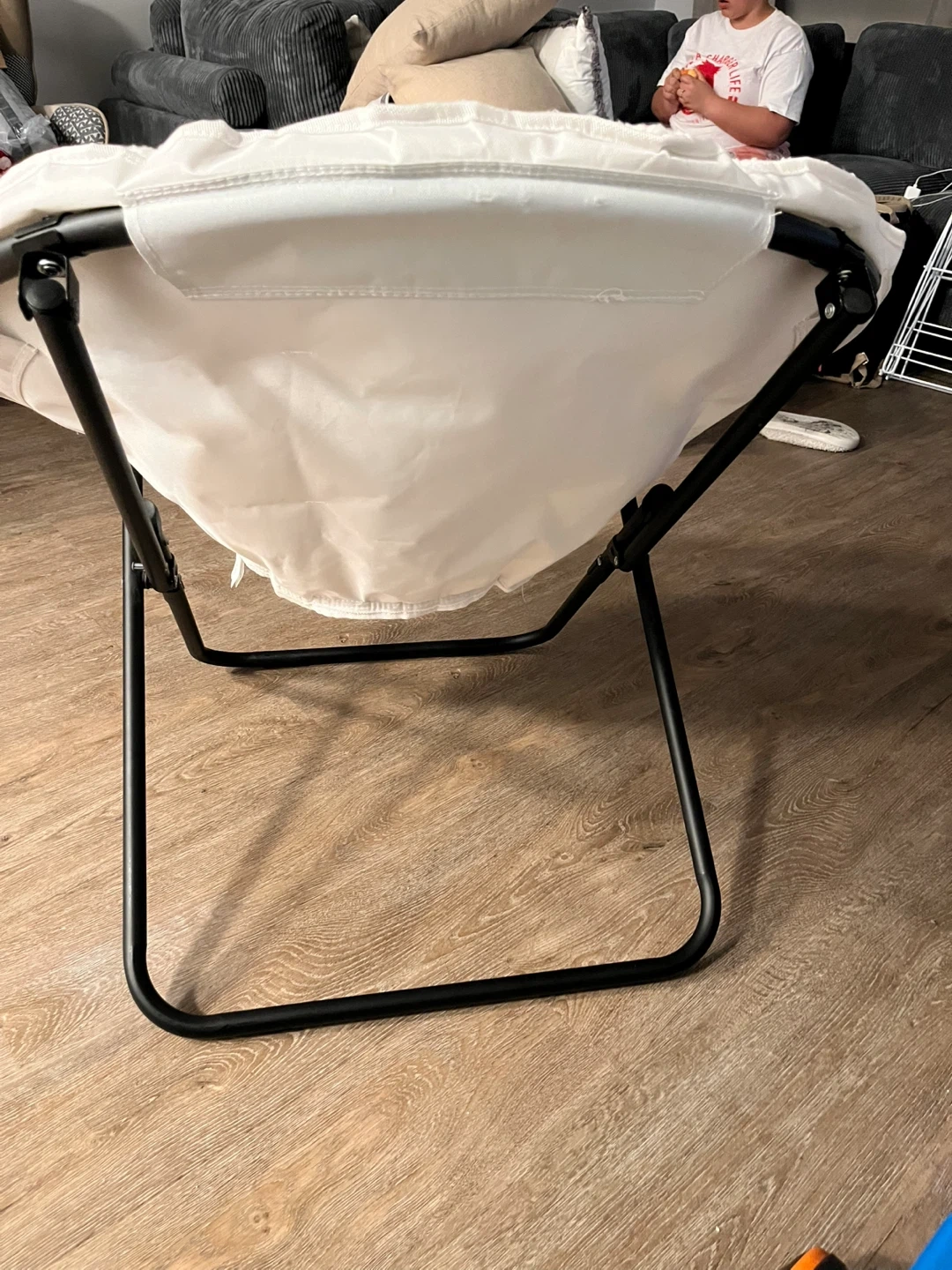 Get cozy with this oversized chair, perfect for adding extra comfort to any room! It measures 31" H x 35" W x 35" and can support up to 225 pounds. The actual color is white, and it's easy to spot clean. Can close up for storage, great for small spaces or even a dorm room. Comes from a smoke free & pet free home. Cash only.