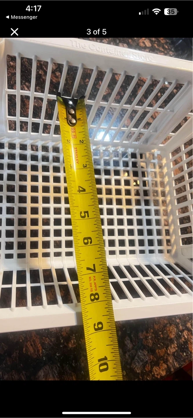 33I have some stackable white plastic bins from The Container Store for sale! They measure approximately 12 inches wide, 10 inches deep, and 7 inches tall. Great for organizing!
