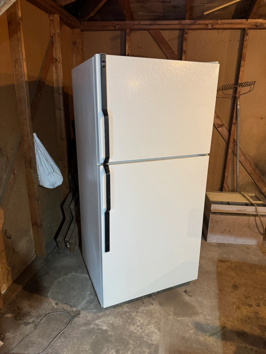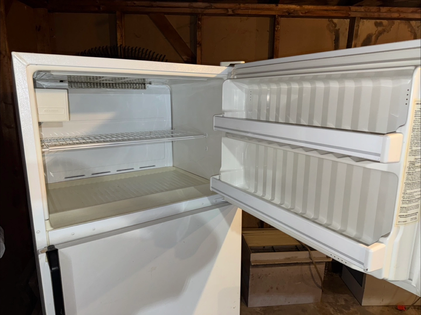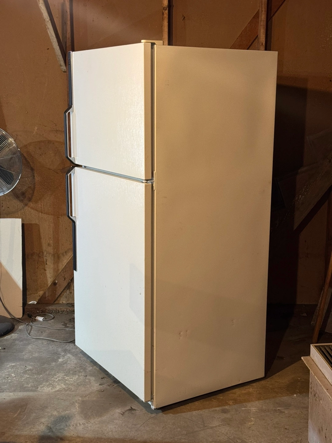 10It's a top-freezer model with adjustable shelves and drawers. Perfect for a garage or small kitchen Shoot me offers Need it gone