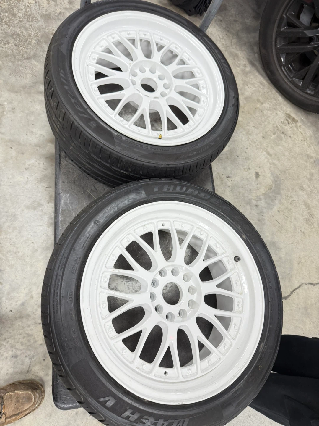 165Selling a set of four white rims with tires. They're in good condition and ready to be put on your car! Check out the photos for a closer look