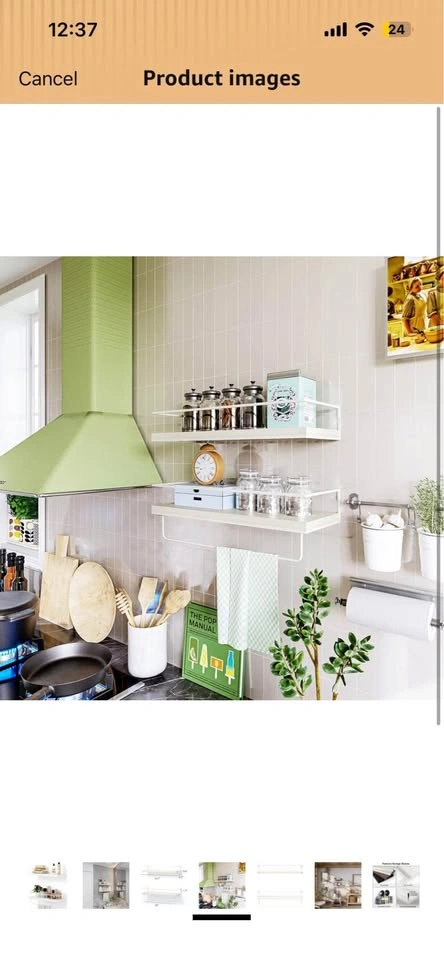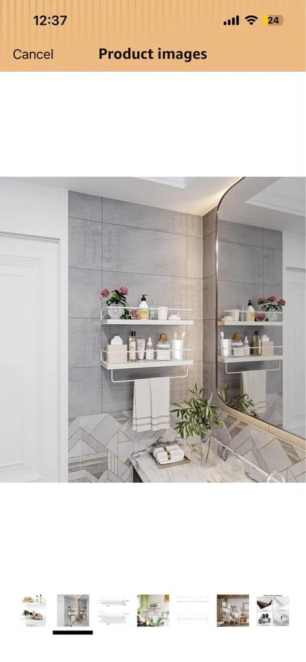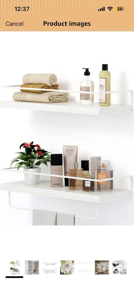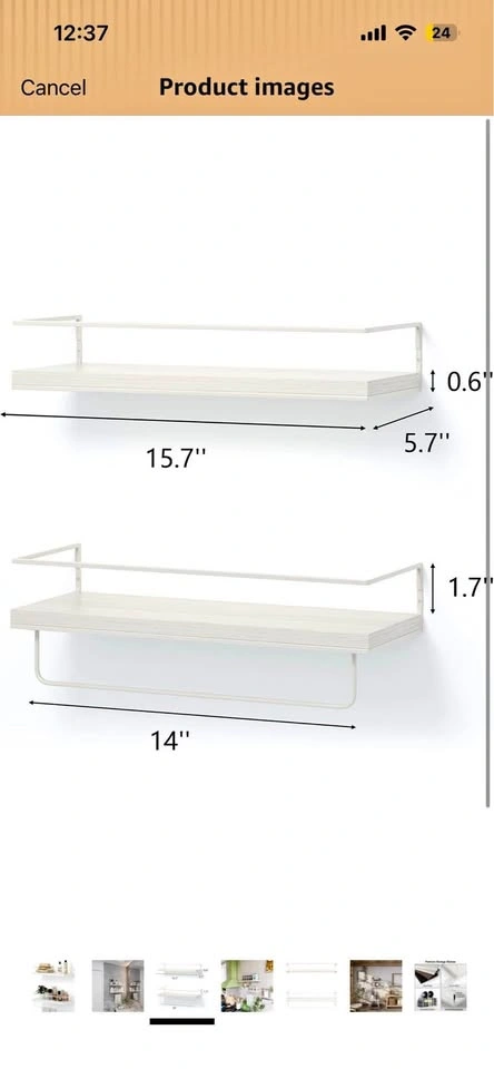 White shelves with towel hanger/rack.