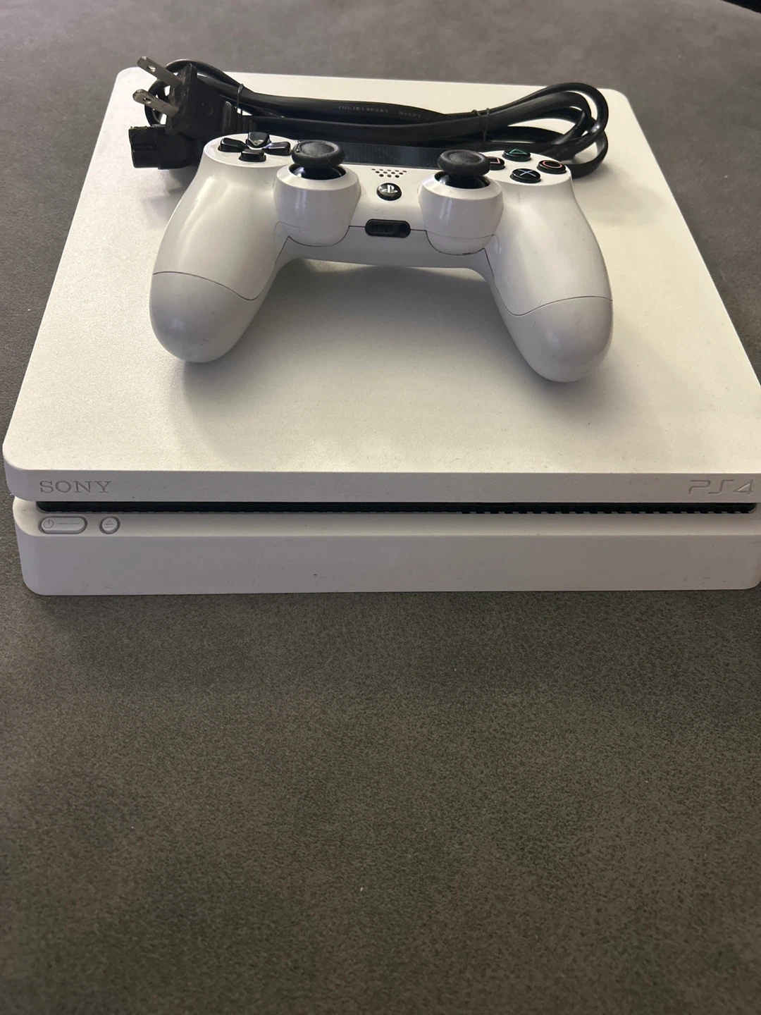 38Selling a white Sony PlayStation 4. Includes the console, one controller, and a power cable. Ready for gaming!