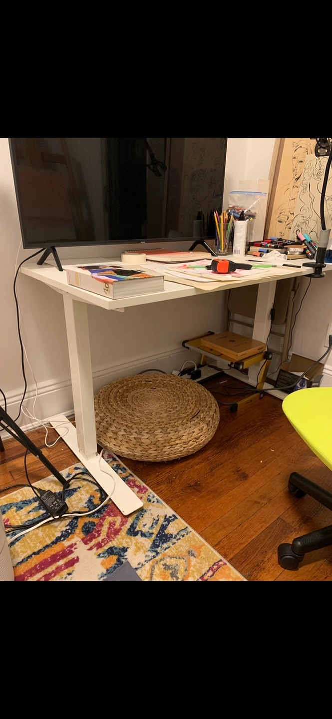 37"47 1/4""x27 1/2"" ""We're moving into a smaller apartment so we're selling this for a great deal! Must come and pick up yourself! This is what a new one looks like (You have to build it): https://www.ikea.com/us/en/p/trotten-desk-sit-stand-white-s99429578/"