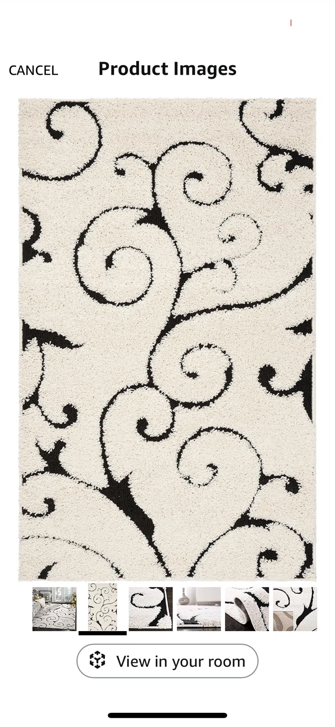 Add a touch of elegance to your space with this stylish shag area rug! It features a beautiful ivory background with a striking black swirl pattern. The rug is soft and plush, perfect for adding comfort and warmth to any room.