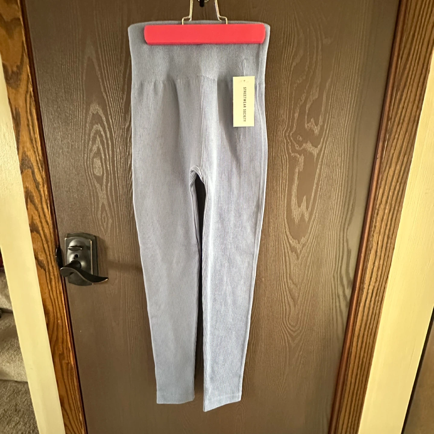 Streetwear Society ribbed leggings. These are a size M/L. They're made from a blend of 92% Polyester and 8% Spandex. These leggings are comfortable and versatile.