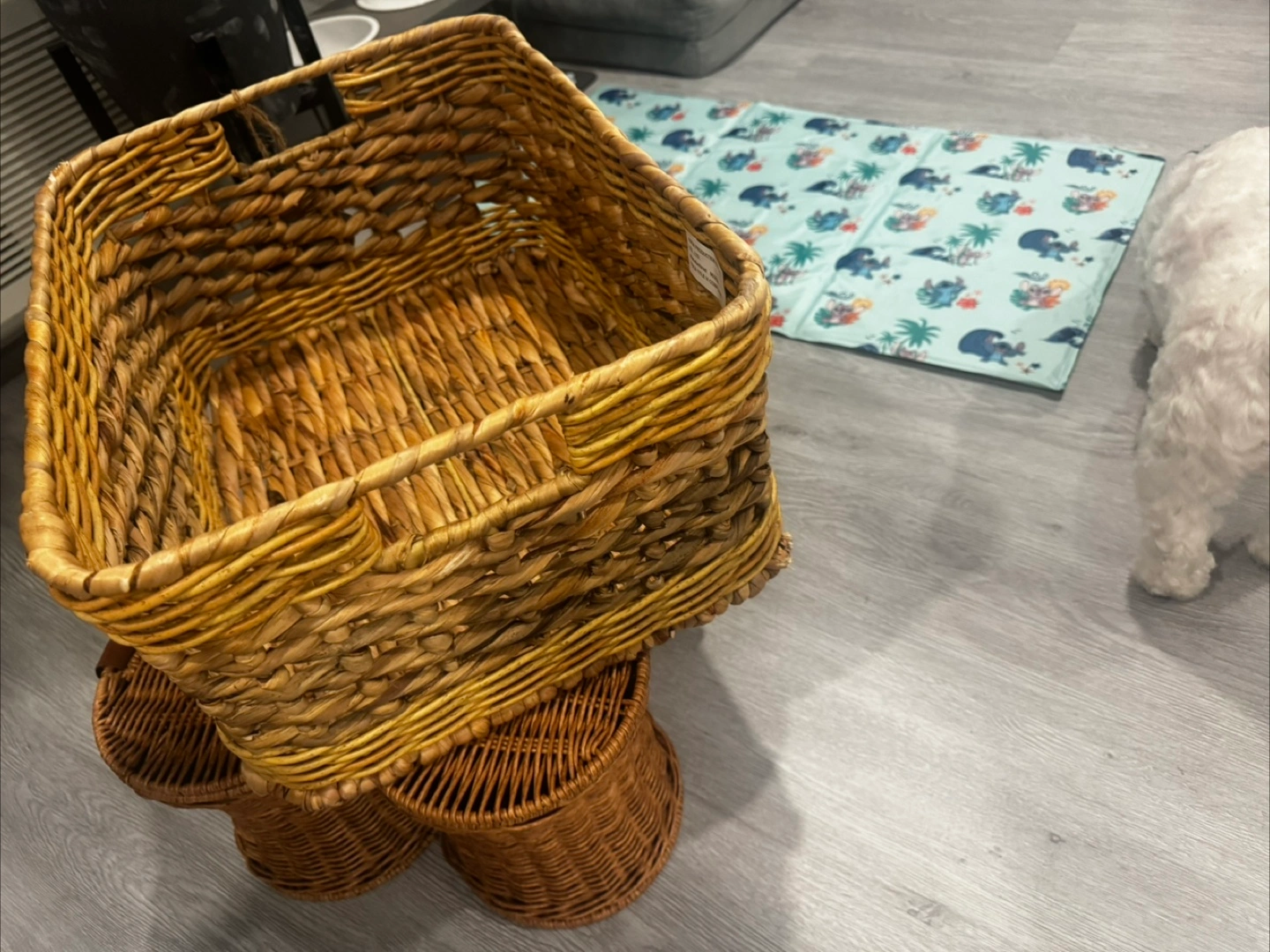 These are wicker storage baskets, perfect for organizing your home! They come in a natural color and are made of durable material ———- for both baskets!