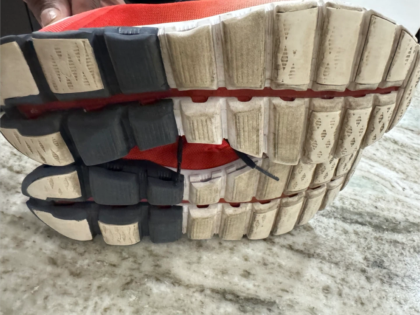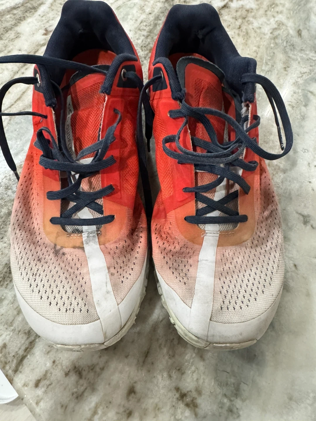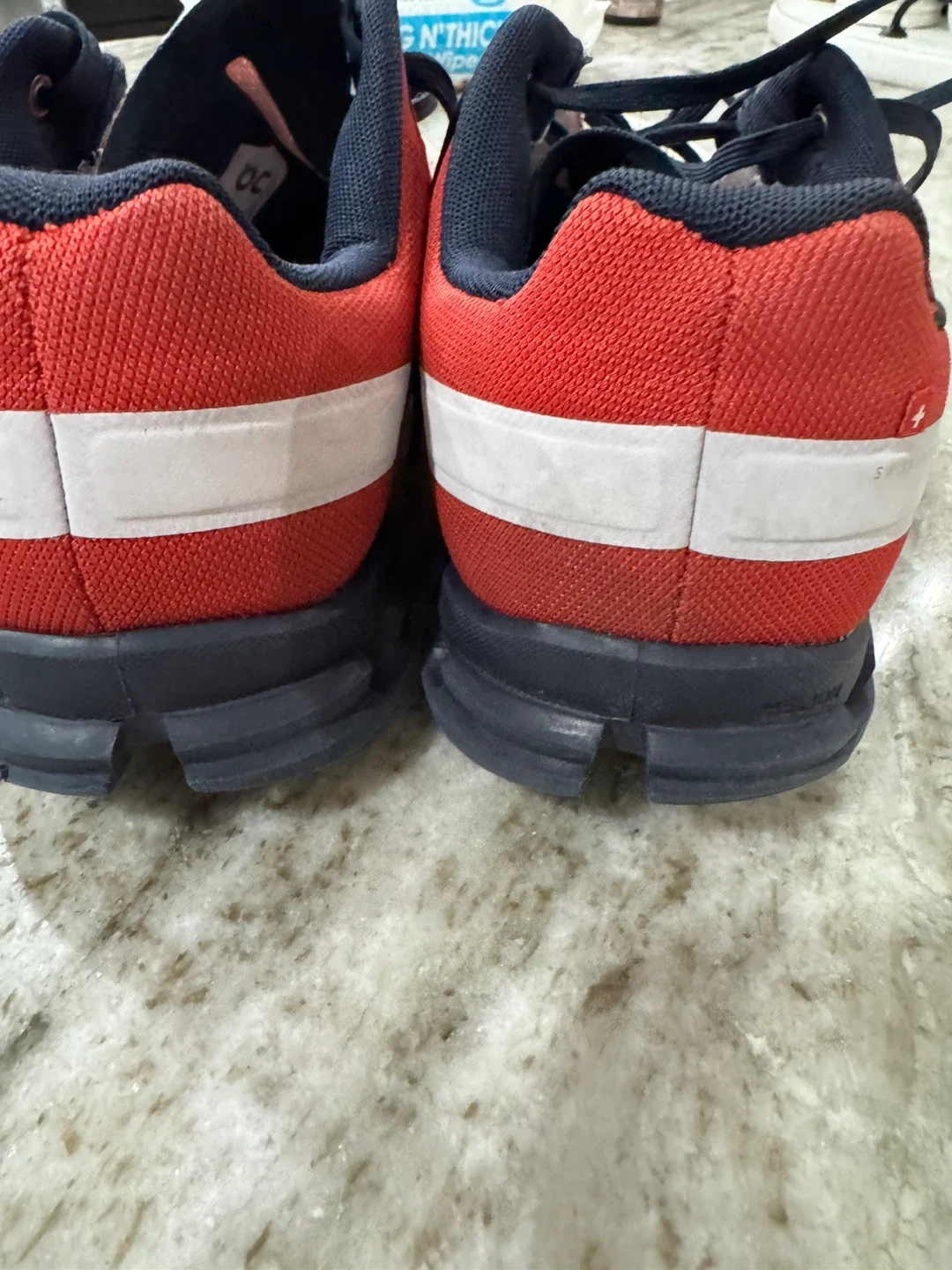 These On running shoes are a vibrant red and navy color. They feature CloudTec cushioning for comfort. Ideal for your daily runs!
