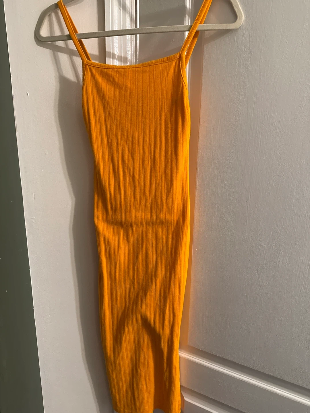 73This is a vibrant ribbed orange dress from Wild Fable in size XXS! It's a fun and stylish piece to add to your wardrobe. The material is comfortable and perfect for a casual day out or dressing up for an evening event