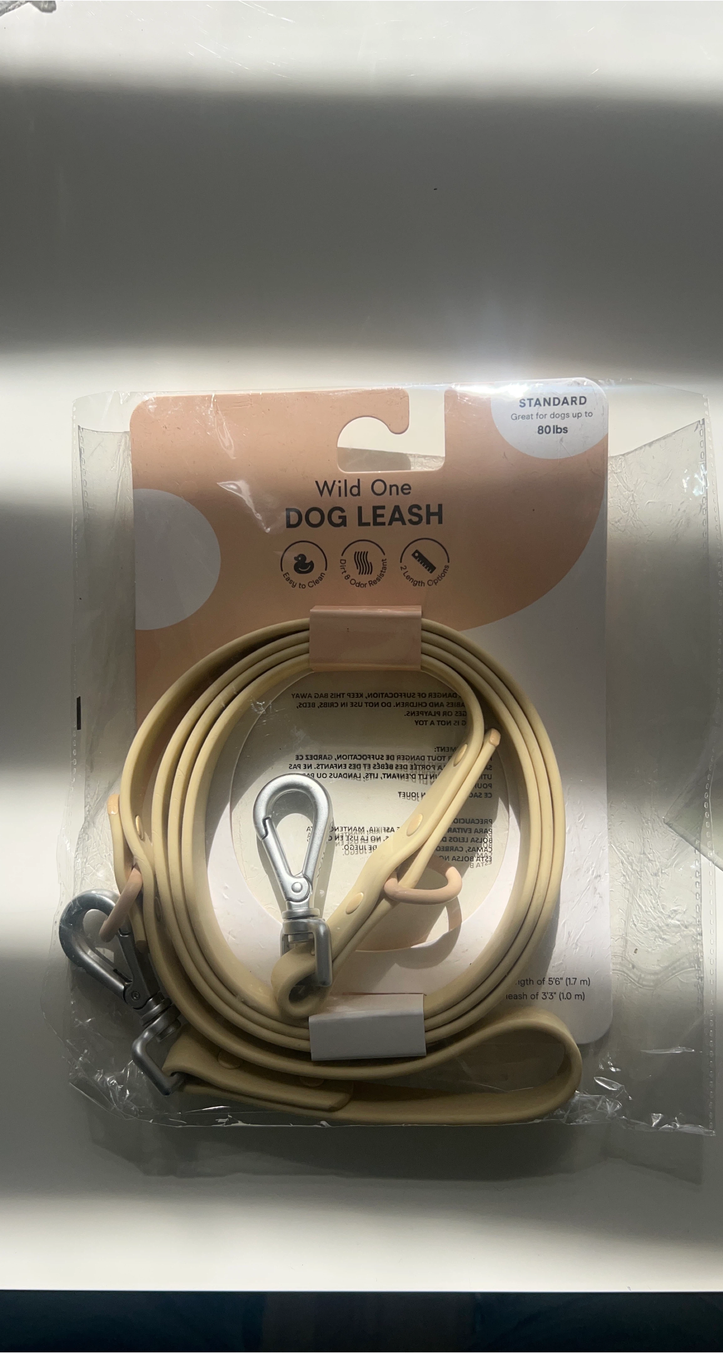 This is a Wild One dog leash, standard size, great for dogs up to 80 lbs! It's easy to clean, dirt and odor resistant, and has 2 length options. The leash is 5'6" (1.7 m) in length and the leash of 3'3" (1.0 m).