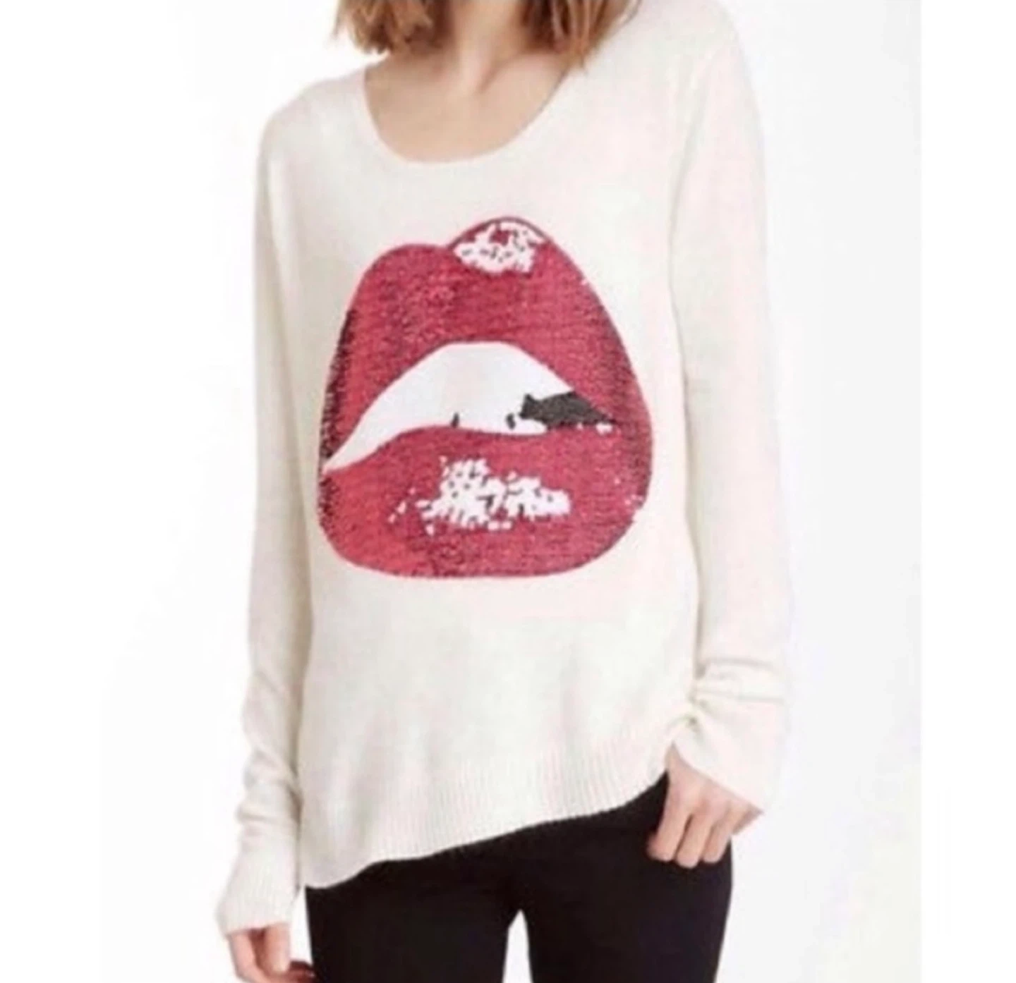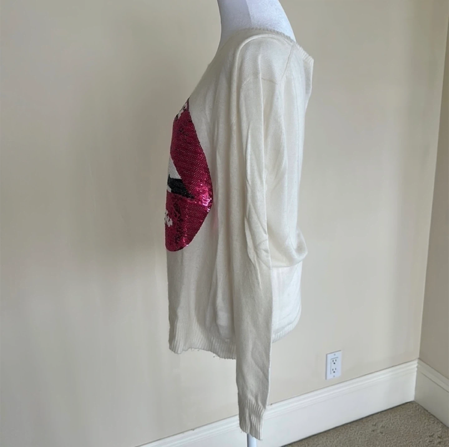 Wildfox Cream-colored sweater with a large sequined lips design on the front. It's in great condition and ready for a new home!