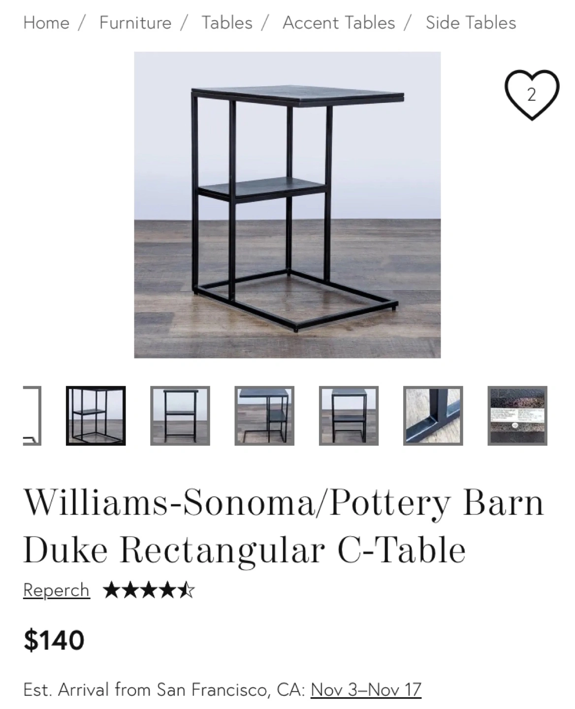 Selling a Williams Sonoma/Pottery Barn Duke Rectangular C-Table! It's in great condition and has a sleek, modern look. The table is made of cast aluminum and iron. Originally bought for $140