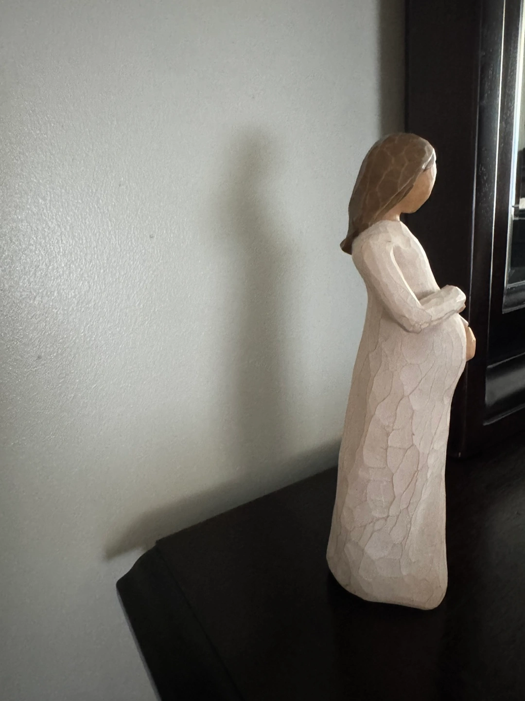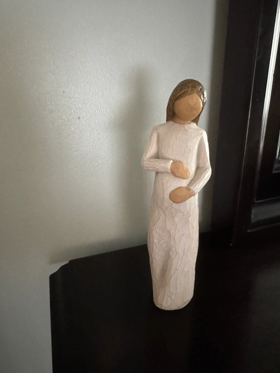 65Selling a Willow Tree figurine called 'New Life'. It's in great condition and would make a lovely addition to any home. It depicts a pregnant woman in a cream-colored dress.