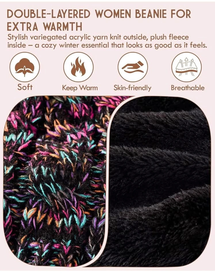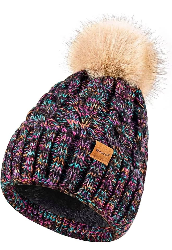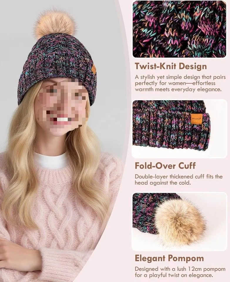 84Winter Hats for Women with Pom Pom, Womens Beanie Fleece Lined for Cold Weather, Multicolor Ski Skull Cap for Ladies. One Size Fits Most with Elasticity. This women winter hat is crafted from highly elastic knitted fabric, comfortably fitting most head circumferences ranging from 14.2 to 22 inches (36 to 54 cm)