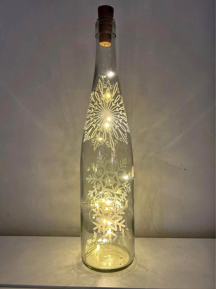 Christmas light winter accent bottle, can be turned on and off, does not heat up, has timer also. Made of glass, battery powered. Located in new Lenox! Let me know if you have any questions or need any more pictures! Winter lights, winter decor, Christmas lights, lamps, reading lights, light, lights, lamp, Christmas lamps, Christmas decor, decor, snowflakes, winter, Christmas