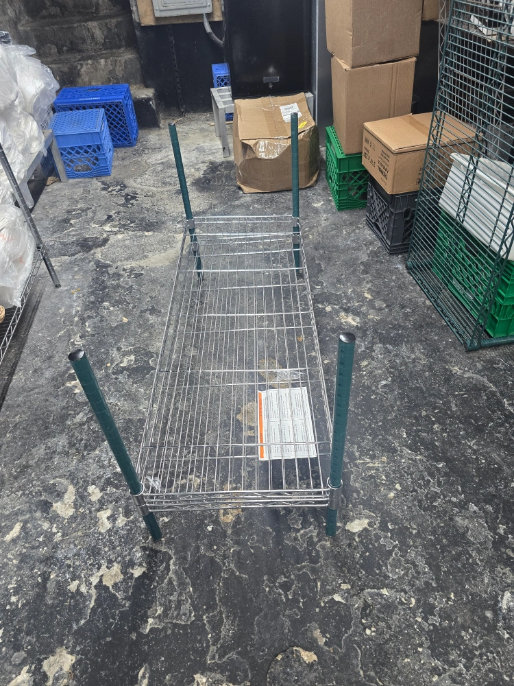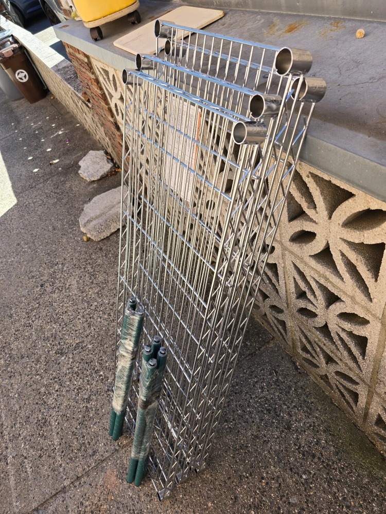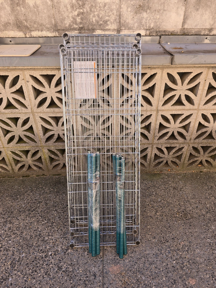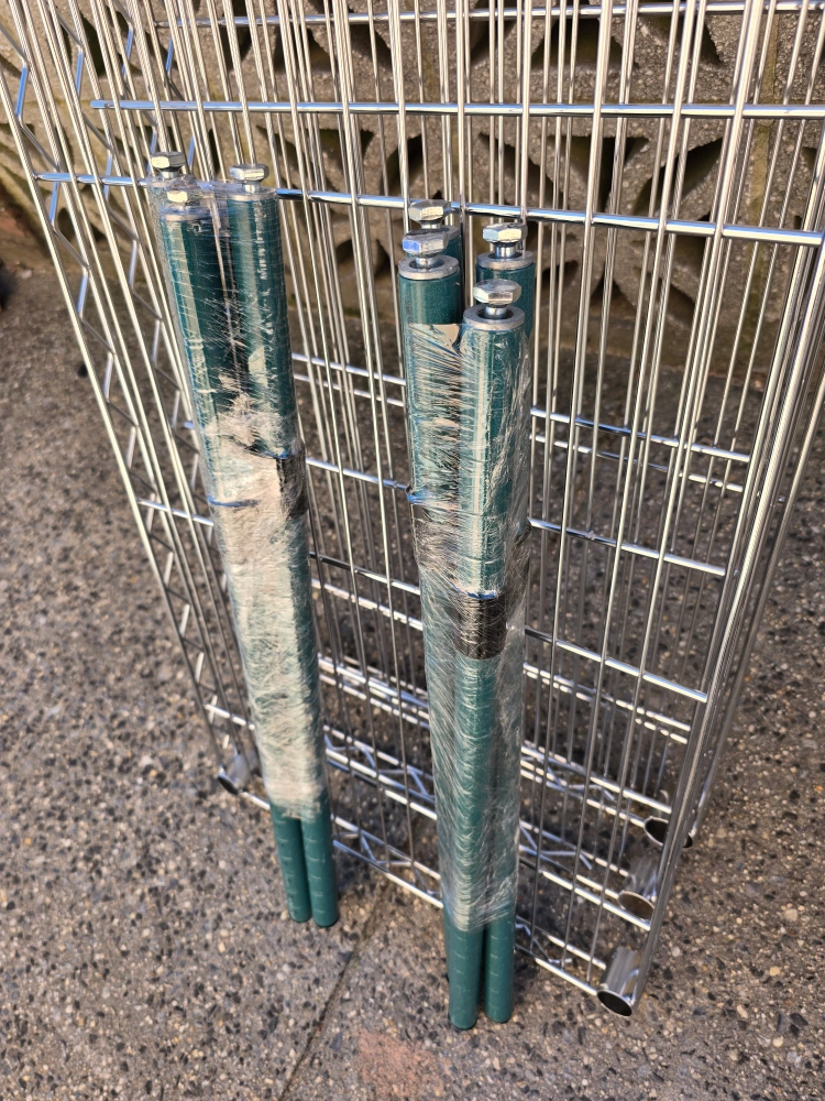 Selling a wire shelving unit. It's in good condition and ready to use! Perfect for storage in your kitchen, garage, or pantry. The shelves are sturdy and easy to assemble