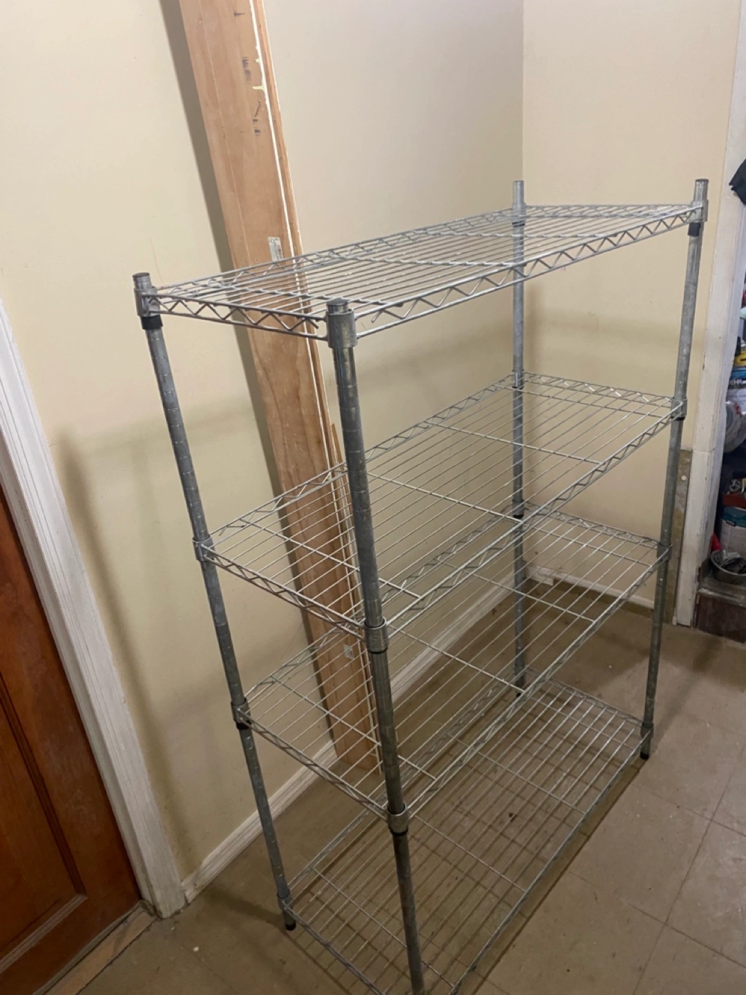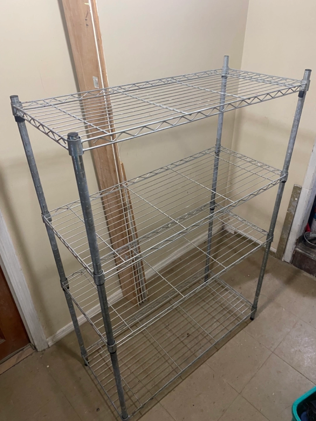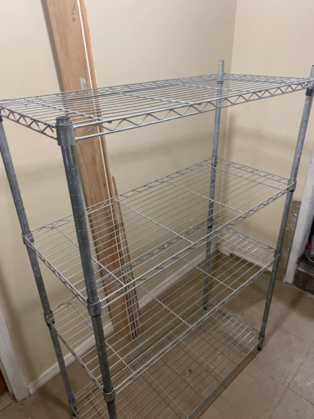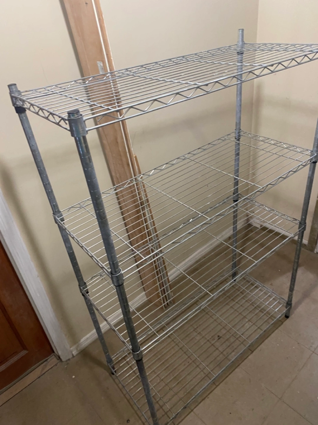 10Wired shelves metal rack,, great for storage, already disassembled, ready for pick up.. sold as is.. cash only.. Please see pictures