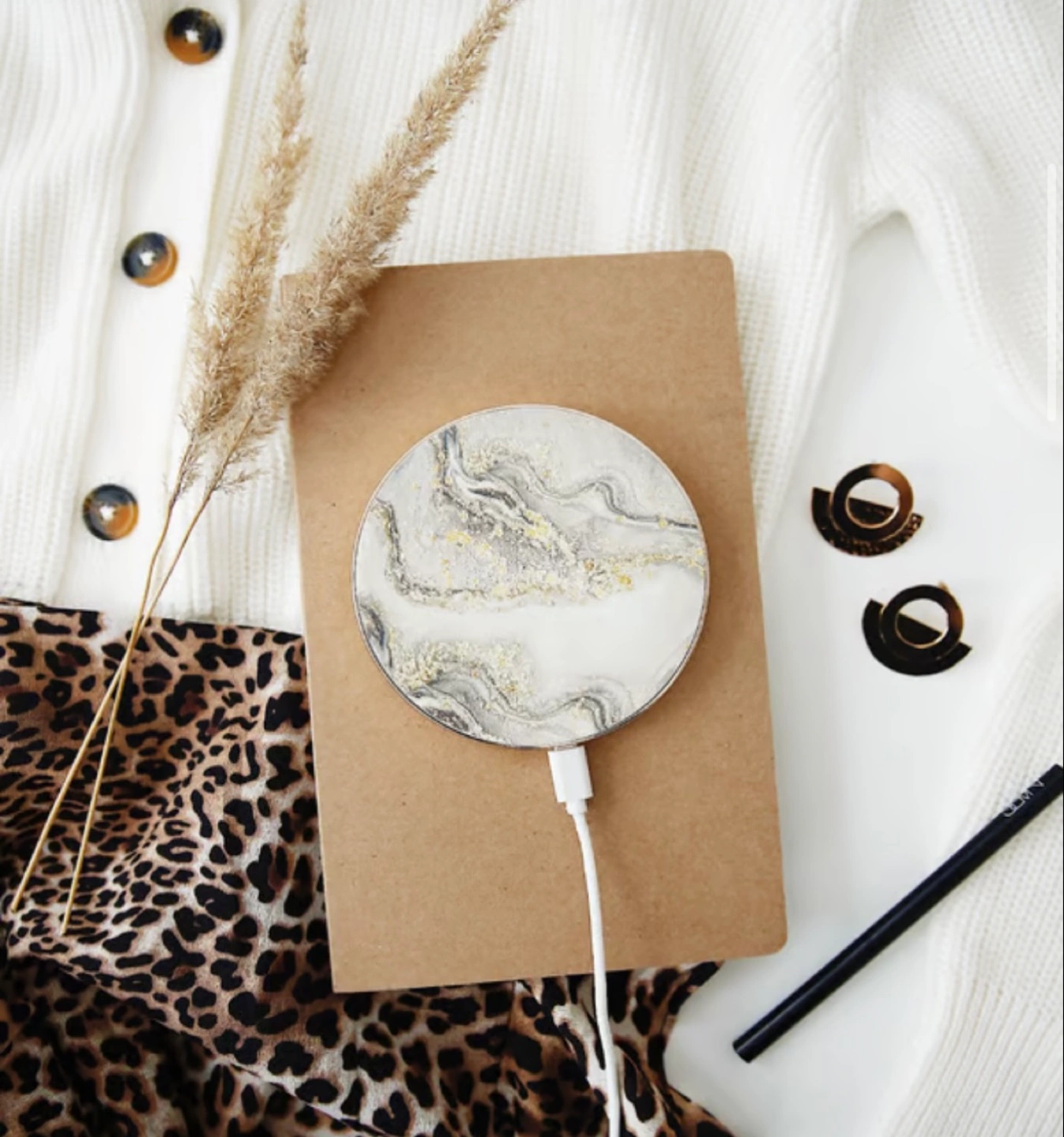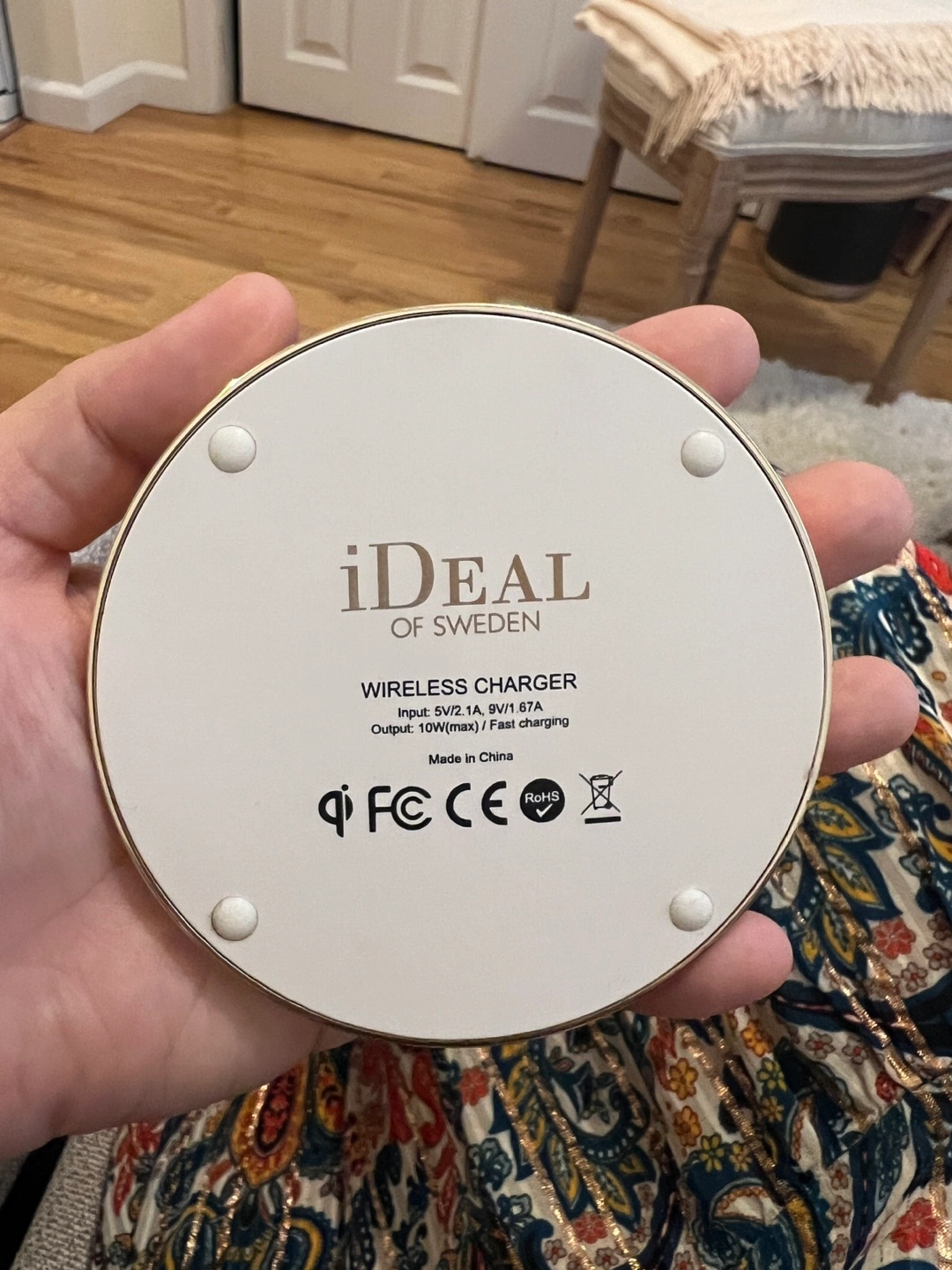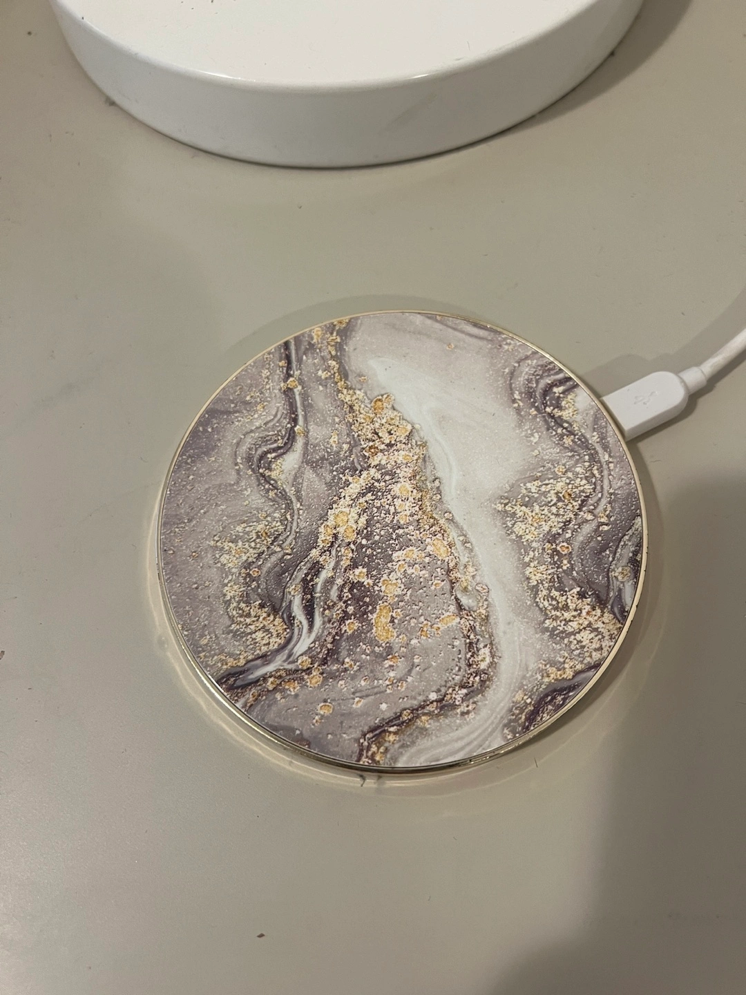 Gold sparkling marble printed wireless charger from Ideal of Sweden Barely used Coming with cable Perfect for home office or bed table in bed room
