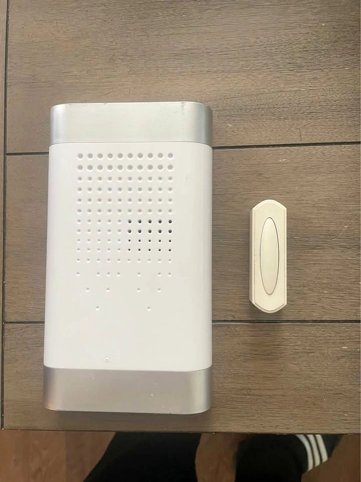 Portable doorbell, just hang the bell on the wall and mount button next to your door, no hardwiring required. Comes with different chimes and volume settings. Local meetup or pickup
